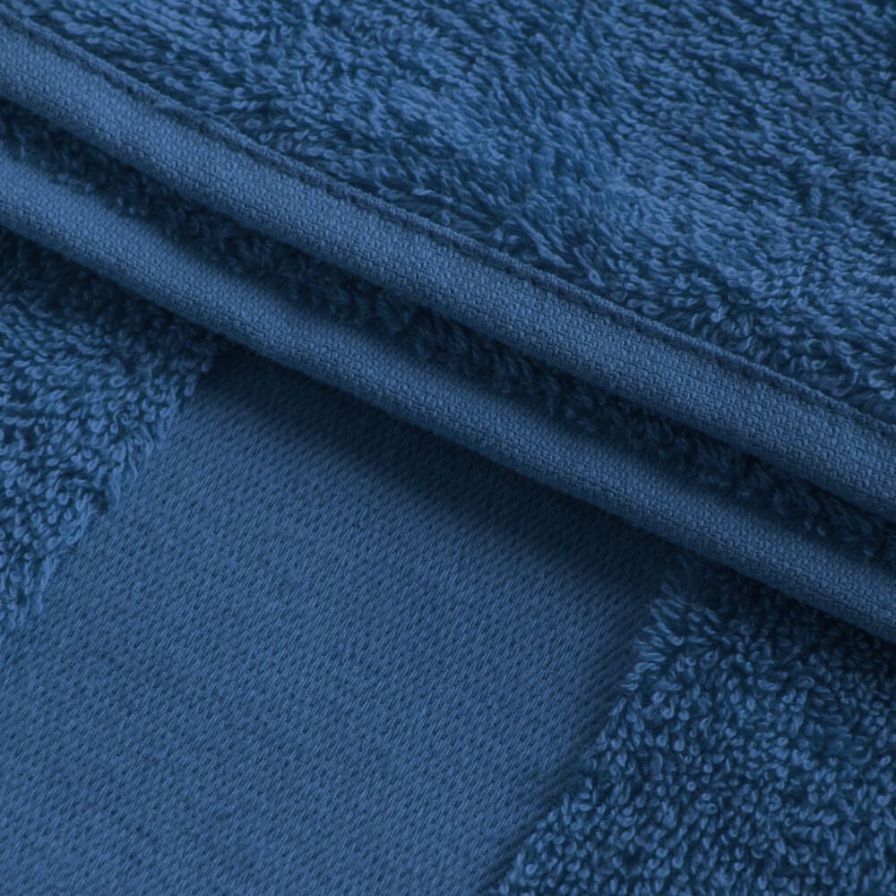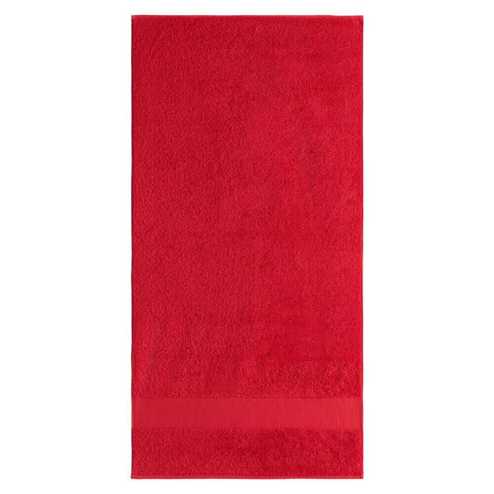 Deze hoogwaardige handdoek meet 100 x 50 cm en weegt 520 gr/m². Gemaakt van 100% ringgesponnen katoen, biedt hij een zachte en duurzame afwerking. De handdoek beschikt over een band van 6 cm hoog voor een elegante touch.
