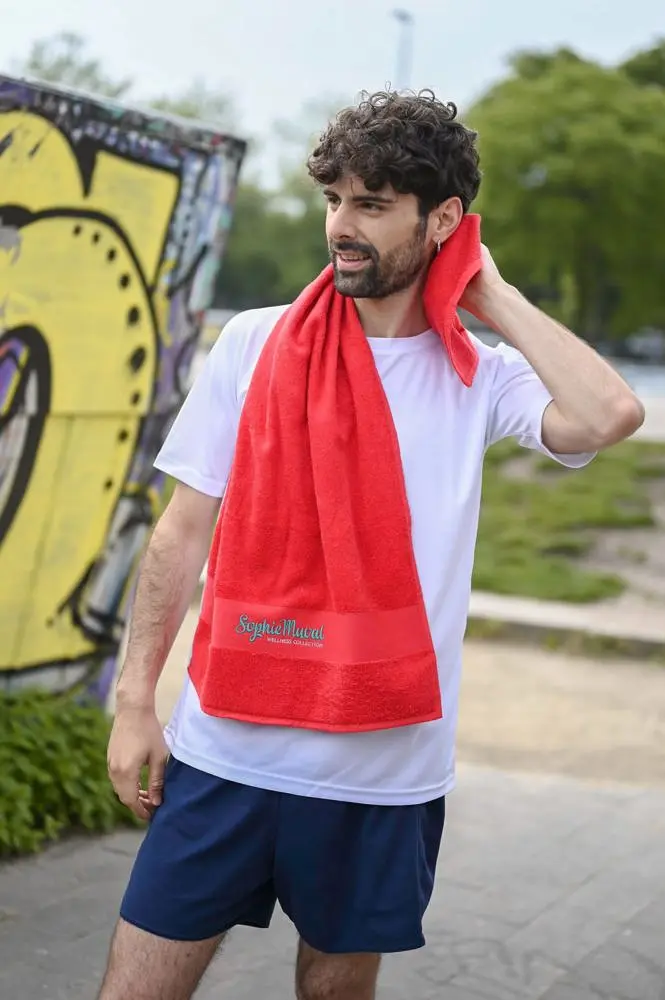 Ontdek onze gepersonaliseerde handdoek van 100 x 50 cm met een gewicht van 450 gr/m², vervaardigd uit 100% katoen. Deze robuuste handdoek biedt superieure absorptie en duurzaamheid, ideaal voor uw marketingacties of events. Personaliseer hem met uw logo op de twee banden van elk zes cm, voor een blijvende indruk bij uw klanten. Combineer met bijpassende sets voor een professionele uitstraling. Perfect als relatiegeschenk om uw merk te promoten en klantrelaties te versterken.