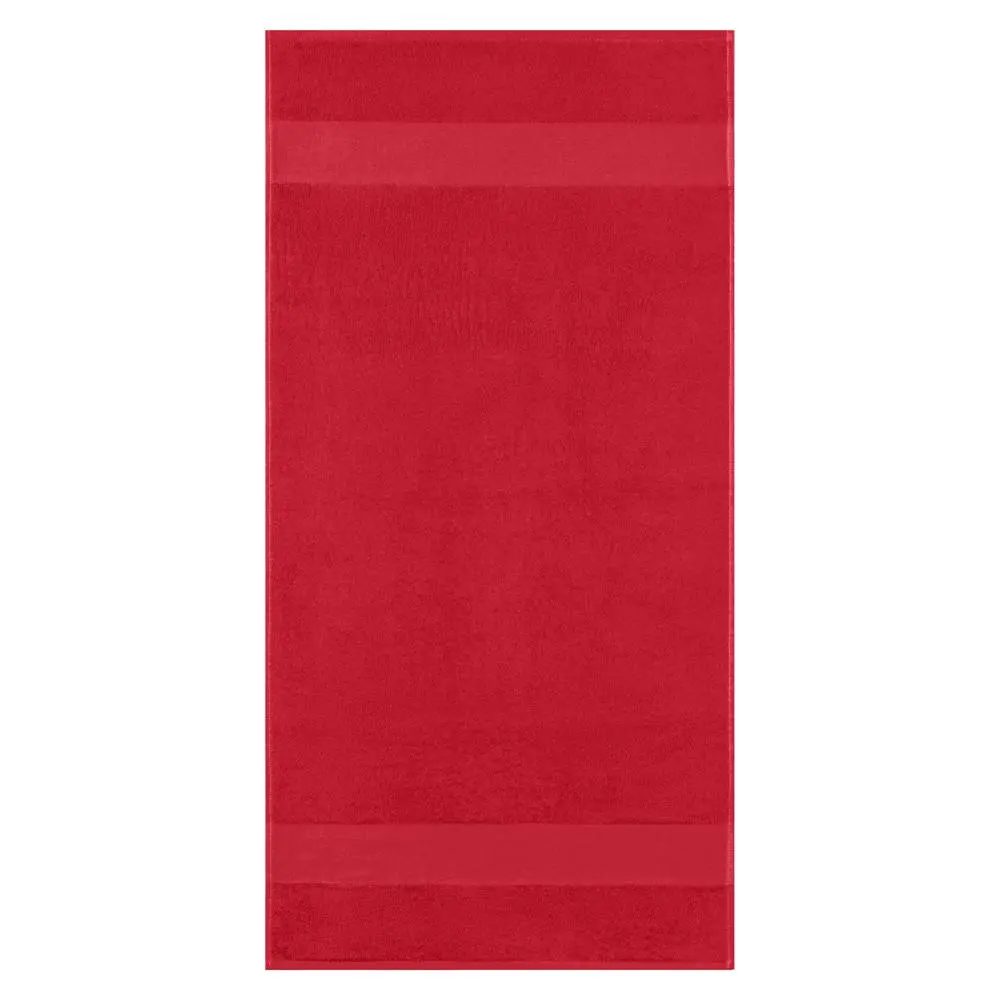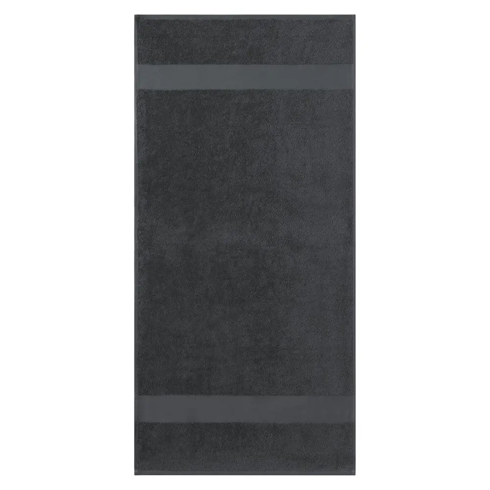 Deze handdoek meet 100 x 50 cm en weegt 450 gr/m². Het materiaal bestaat uit 100% katoen, wat zorgt voor een hoogwaardige kwaliteit. De handdoek bevat twee banden van elk zes cm, ideaal voor personalisatie met uw logo of bedrijfsnaam.