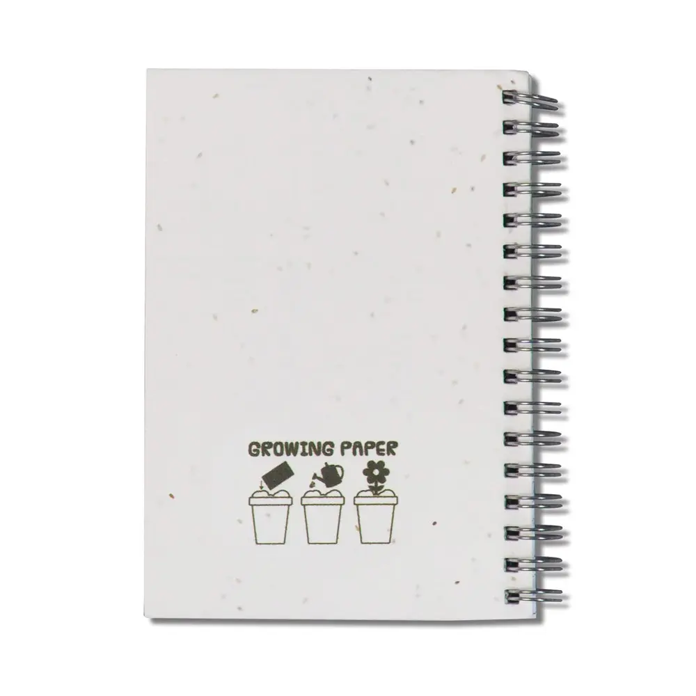 Ontdek ons spiraal notitieboekje van zaadpapier, een uniek en duurzaam relatiegeschenk dat perfect past bij uw marketing- of eventstrategie. Personaliseer het met uw logo voor een blijvende indruk op uw klanten. Na gebruik plant u de kaft eenvoudig in de grond en geeft u water: de ingebouwde zaadjes – een mix van lavendel, madeliefjes, chrysanten, munt en kersentomaten – ontkiemen en laten uw boodschap letterlijk bloeien.