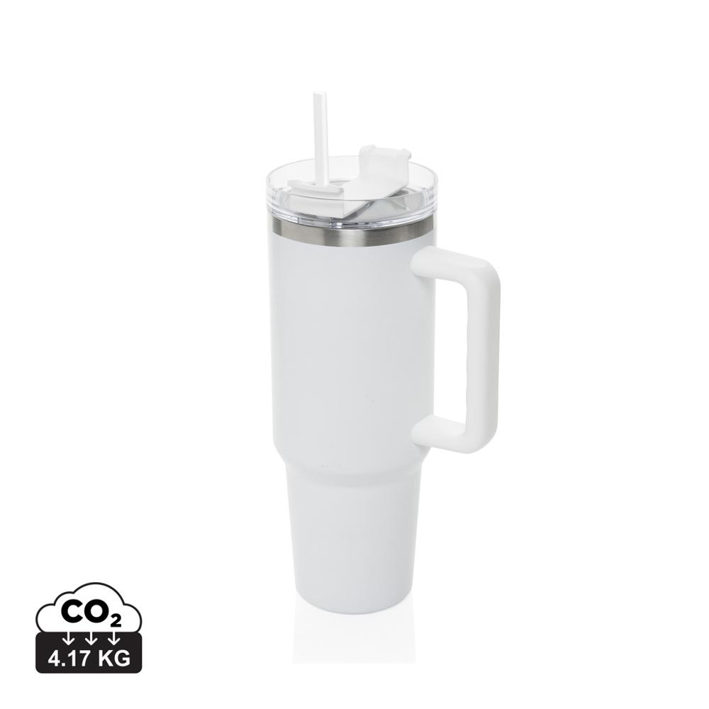 Maak kennis met Peakflow, de ultieme 1200 ml tumbler voor wie net wat meer nodig heeft. Met een comfortabele handgreep en slanke basis is hij gemakkelijk mee te nemen en past hij in de meeste bekerhouders, zodat je onderweg gehydrateerd blijft. Buitenkant gemaakt van duurzaam gerecycled roestvrij staal, houdt Peakflow met zijn dubbelwandige, vacuümgeïsoleerde ontwerp je drankjes op de perfecte temperatuur. Hij is voorzien van een morsbestendige deksel met dubbele functie: direct drinken of gebruik de meegeleverde plastic rietje. RCS-gecertificeerd, met 29% gerecycled materiaal en BPA-vrij. Perfect praktisch en milieuvriendelijk, handwas aanbevolen. Bulk verpakt.