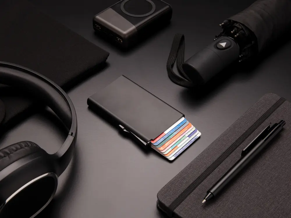 Ontdek de standaard aluminium RFID-kaarthouder, een robuust en praktisch relatiegeschenk voor uw marketingcampagnes en events. Deze kaarthouder van aluminium en ABS beschermt uw creditcards, rijbewijs en andere passen tegen ongewenste RFID-scans, terwijl hij tot 6 reliëfkaarten of 10 platte kaarten veilig opbergt. Met de eenvoudige schuifknop aan de zijkant duwt u de kaarten moeiteloos omhoog voor snelle toegang.