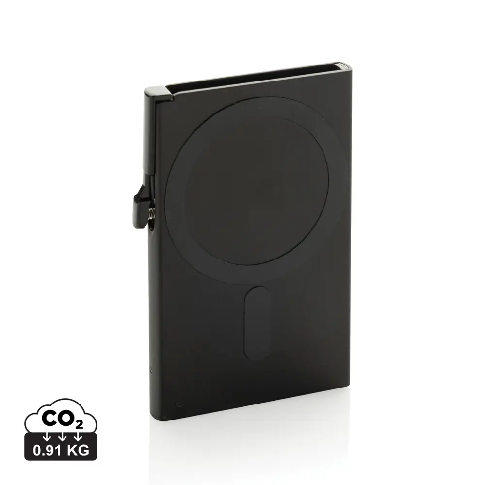 Ontdek onze aluminium RFID magnetische kaarthouder, perfect als gepersonaliseerd relatiegeschenk met uw logo. Deze slimme accessoire beschermt uw kaarten tegen digitale diefstal door NFC-signalen (13.56 MHz) te blokkeren, terwijl de magnetische bevestiging moeiteloos aan uw smartphone klikt. Lichtgewicht en compact, biedt hij ruimte voor maximaal 7 platte of 5 reliëfkaarten, zodat u altijd uw essentials bij de hand hebt.