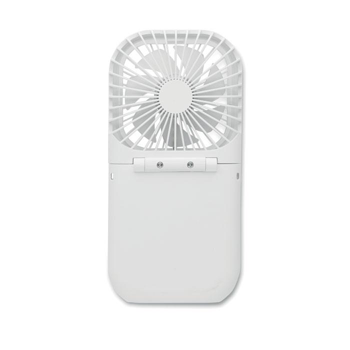 Draagbare opvouwbare ventilator met verstelbare band. 3 snelheidsinstellingen. Kan ook als bureau ventilator worden gebruikt wanneer opgevouwen. Inclusief powerbank van 3000 mAh.