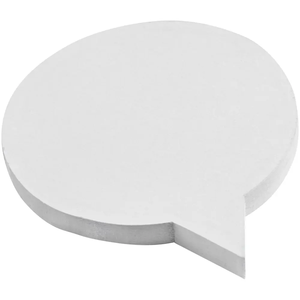 Ontdek de Sticky-Mate® tekstballonvormige sticky notes, perfect voor uw marketingcampagnes en events. Deze compacte notitieblokjes (6,7 x 0,5 x 6,5 cm) bestaan uit 50 vellen gerecycled papier van 80 g/m², ideaal voor duurzame relatiegeschenken. Personaliseer elk vel met een full colour bedrukking van uw logo of boodschap, en maak een blijvende indruk op uw klanten.