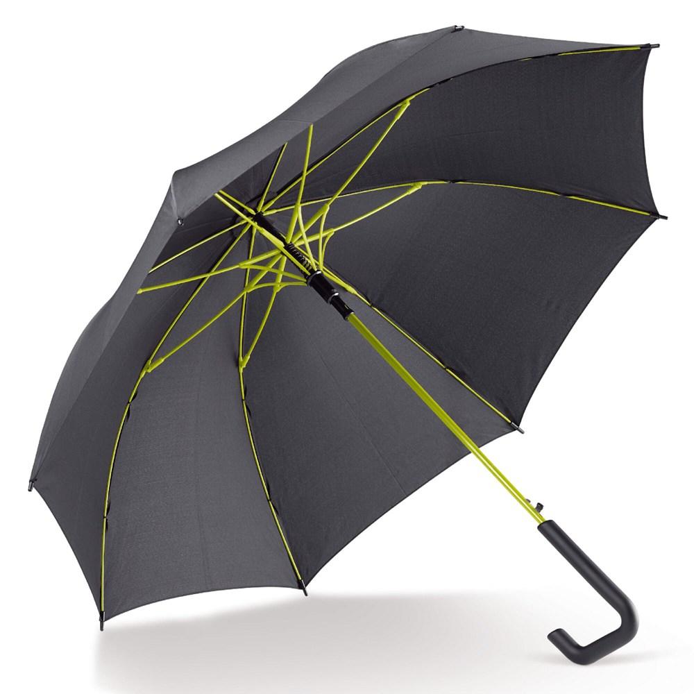 Je ontvangt een fraaie stokparaplu met automatisch openmechanisme, perfect voor bedrukking met jouw logo. De glasvezel baleinen zorgen voor extra stevigheid, zelfs bij harde wind, en het pongee polyesterdoek is waterafstotend en duurzaam.