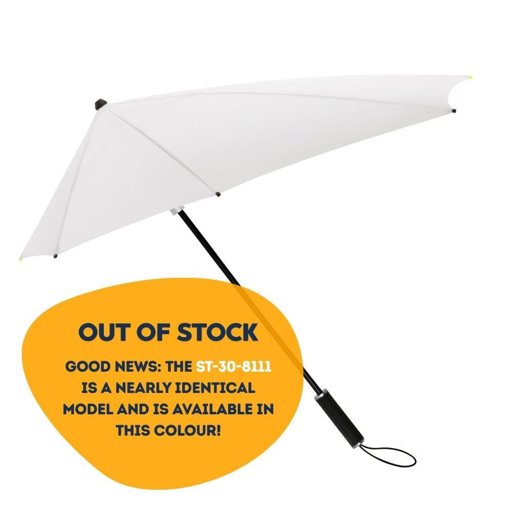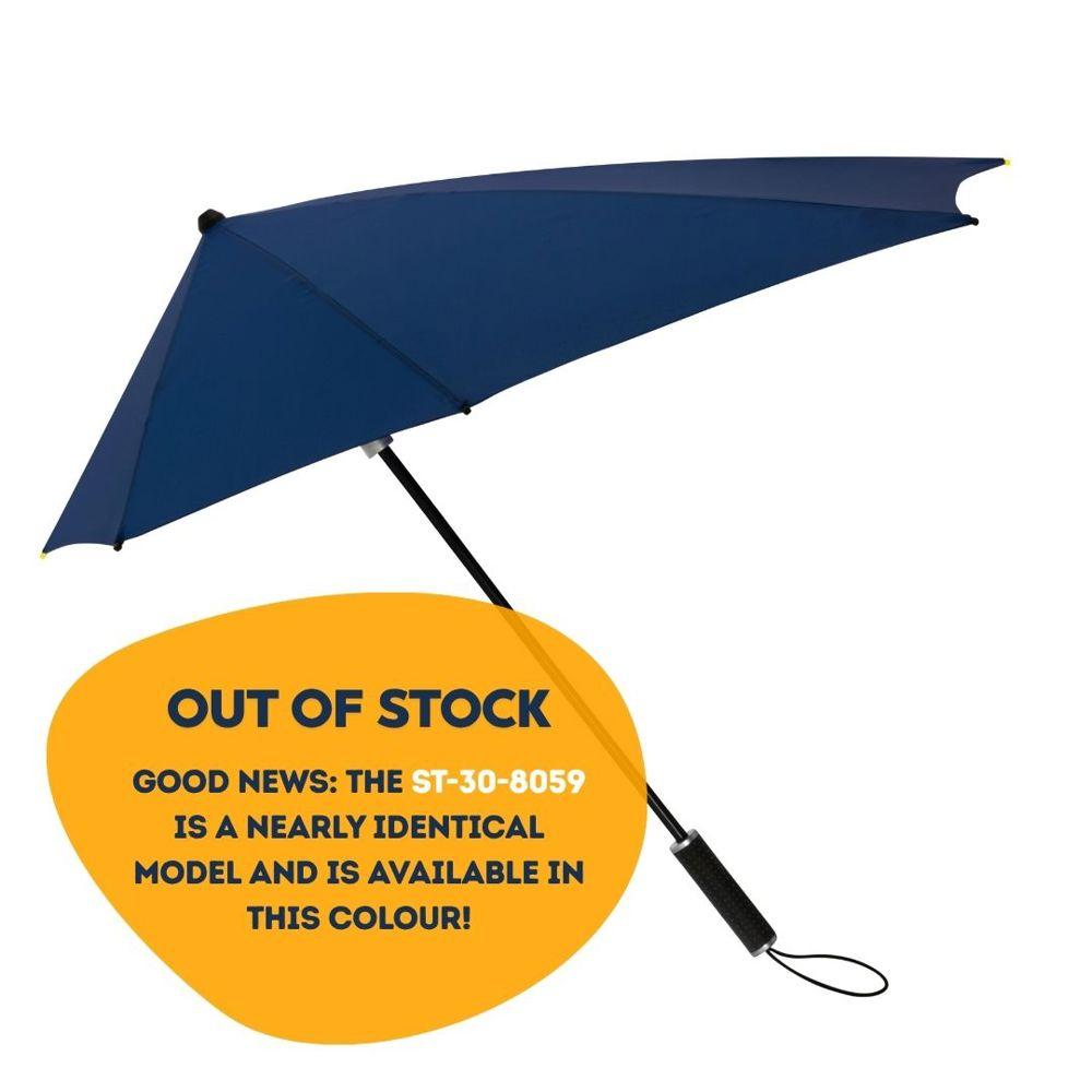 Ontdek de STORMaxi stormparaplu, jouw betrouwbare partner bij extreme weersomstandigheden. Getest in een windtunnel houdt deze paraplu moeiteloos windsnelheden tot 100 km/u stand, dankzij het versterkte glasvezel frame en stevige scharnierpunten. Je krijgt niet alleen optimale duurzaamheid, maar ook een slimme aërodynamische vorm met brede achterkant voor volledige regenbescherming.