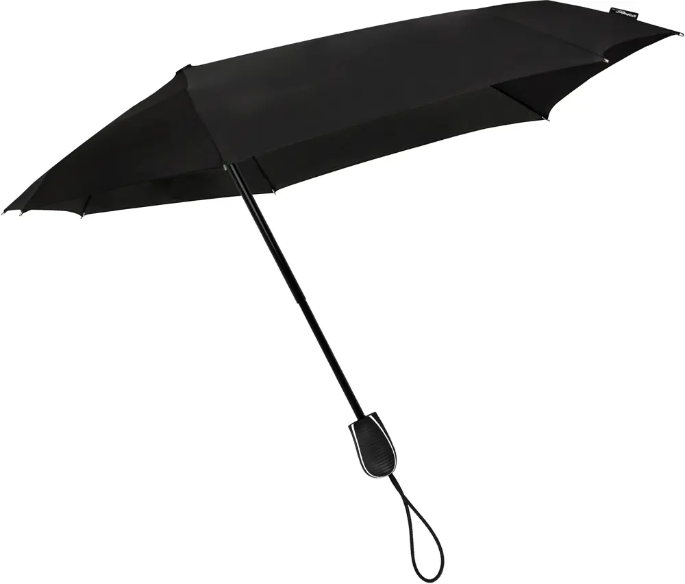 De STORMaxi is een aërodynamische opvouwbare stormparaplu die windtunnels heeft doorstaan en moeiteloos windsnelheden tot 80 km/u weerstaat. Met een verstevigde 3-delige stok en robuust aluminium/glasvezel frame biedt deze paraplu superieure duurzaamheid. Het comfortabele handvat en de bijpassende hoes zorgen voor gebruiksgemak, terwijl de brede achterkant maximale beschutting tegen regen levert.