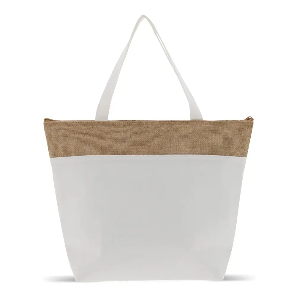 Ontdek onze strandkoelerzak van katoen en jute, ideaal als gepersonaliseerd relatiegeschenk voor uw bedrijf. Met afmetingen van 43x33x14 cm biedt deze tas een ruime capaciteit voor drankjes en snacks, perfect voor events, stranddagen of promotionele acties. De combinatie van natuurlijke materialen zorgt voor duurzaamheid en een eigentijdse look, terwijl SMETA-certificering ethische productie garandeert.