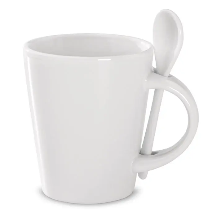 Ontdek onze SUBLIMKONIK - sublimatie mok met lepel, een ideaal gepersonaliseerd relatiegeschenk voor uw marketingcampagnes of events. Deze keramische koffiemok van aardewerk heeft een inhoud van 300 ml en wordt geleverd met een bijpassende lepel, perfect voor dagelijks gebruik. Dankzij de speciale sublimatiebedrukkingstechniek kunt u eenvoudig uw logo of ontwerp aanbrengen, wat zorgt voor een professionele en opvallende promotie. Het duurzame materiaal behoudt warmte en smaak, terwijl de praktische verpakking in een wit kartonnen doosje transport en uitreiking vergemakkelijkt. Kies voor deze mok om uw merk te versterken bij klanten en relaties, met een hoogwaardige uitstraling die herhaalde zichtbaarheid garandeert.