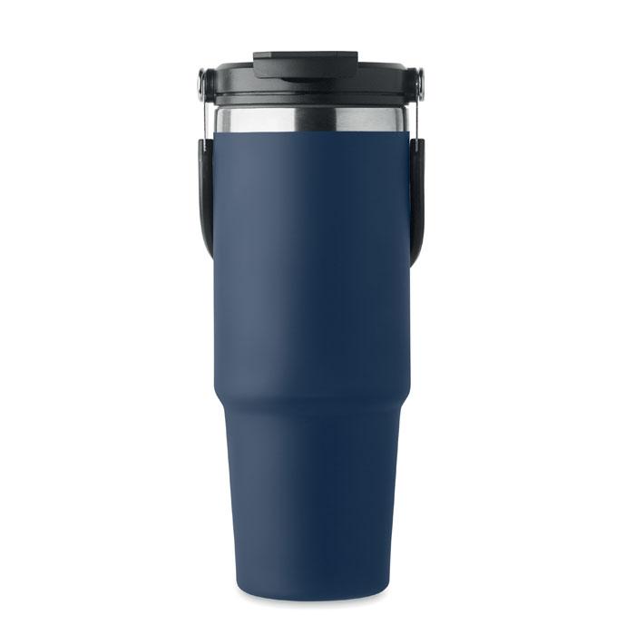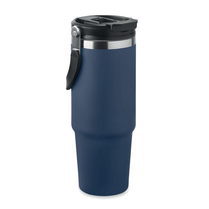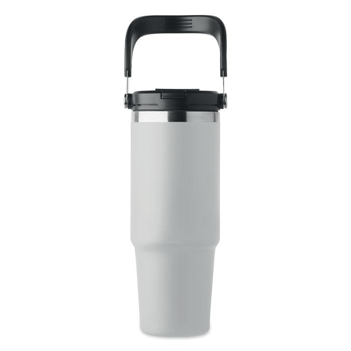 Dubbelwandige gerecyclede roestvrijstalen beker (90% gerecycled roestvrij staal en 10% roestvrij staal) met deksel met ingebouwd rietje, uitklapbaar mondstuk en directe drinkopening. Inhoud 850ml.
