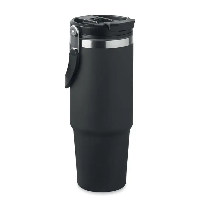 Ontdek onze dubbelwandige beker van 850 ml, ideaal als gepersonaliseerd relatiegeschenk voor uw bedrijf. Deze robuuste beker, vervaardigd uit 90% gerecycled roestvrij staal en 10% roestvrij staal, biedt een duurzame oplossing voor uw marketingacties en events. Met een ingebouwd deksel inclusief rietje, uitklapbaar mondstuk en directe drinkopening zorgt u voor gebruiksgemak bij uw klanten.