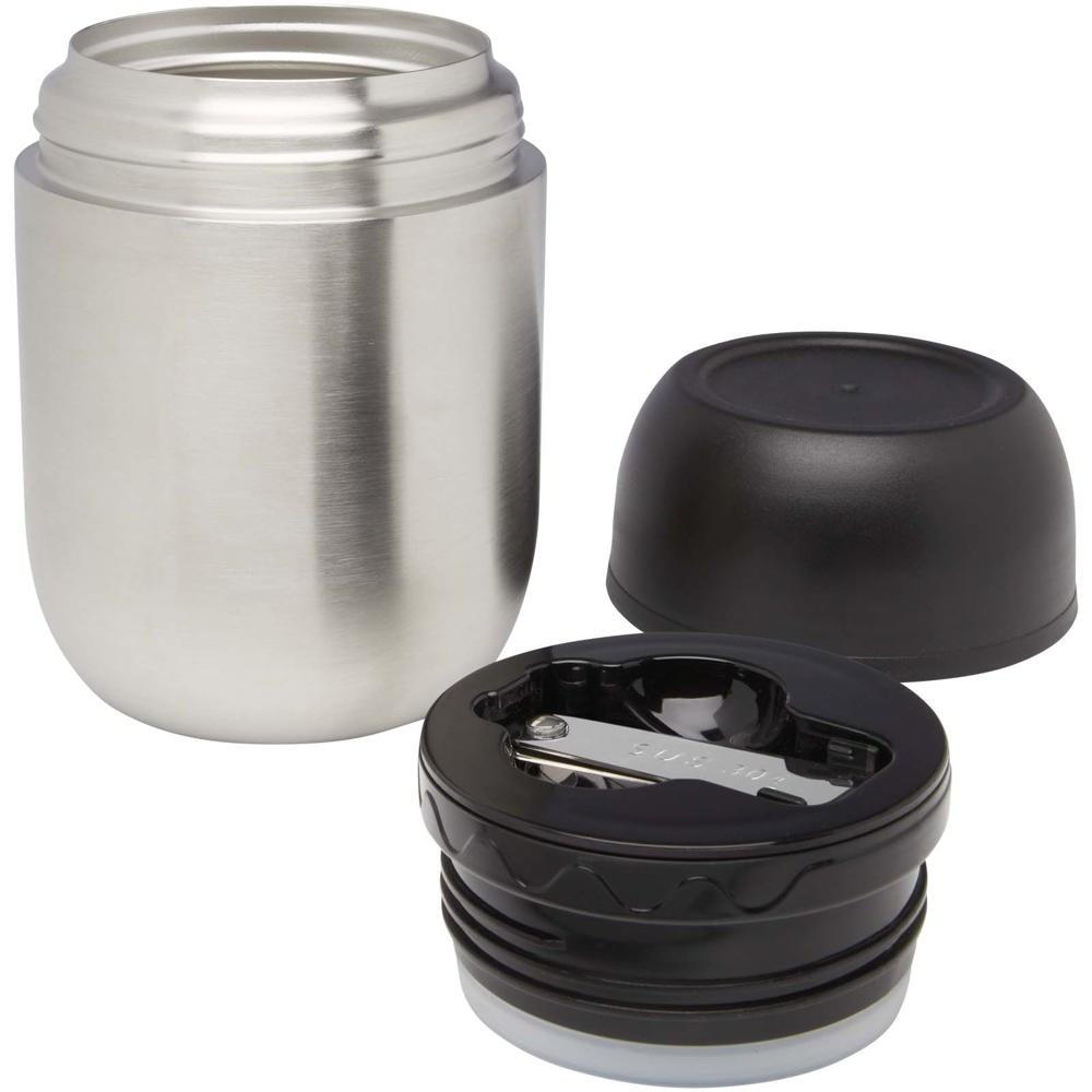 De dubbelwandige constructie houdt je maaltijden op temperatuur, terwijl de opvouwbare lepel in het deksel onderweg maaltijden supersimpel maakt. Met een inhoud van 480 ml en diameter van 98 mm past hij perfect in elke tas, en de verpakking in gerecycled kraftpapier versterkt je groene imago.