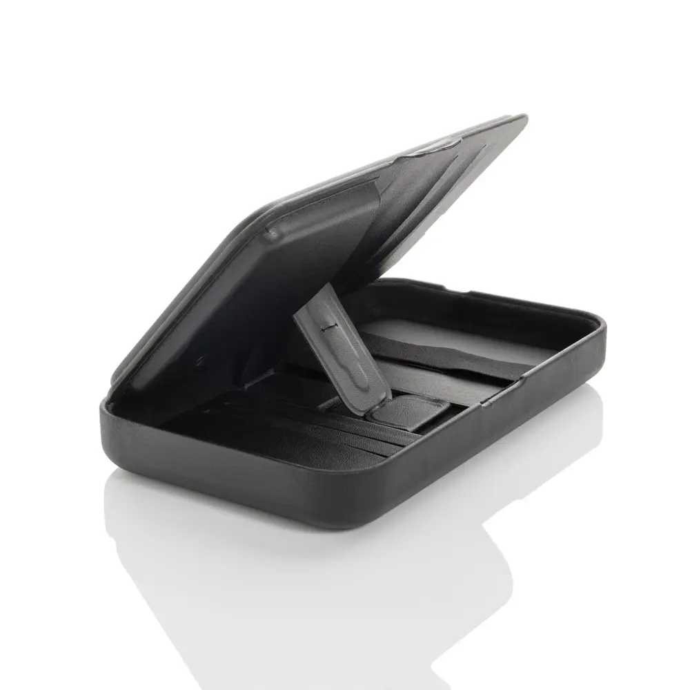 Dit reisetui biedt ruime opbergruimte voor uw paspoort, meerdere kaarten en een geïntegreerde kabelhouder. Binnenin vindt u een verwijderbare magnetische portemonnee voor extra gemak. Het etui is uitgerust met een 120 cm TPE-kabel en wordt geleverd in FSC® mix verpakking. Artikel en accessoires zijn 100% PVC-vrij, wat bijdraagt aan een veilige en duurzame keuze voor uw team en klanten.