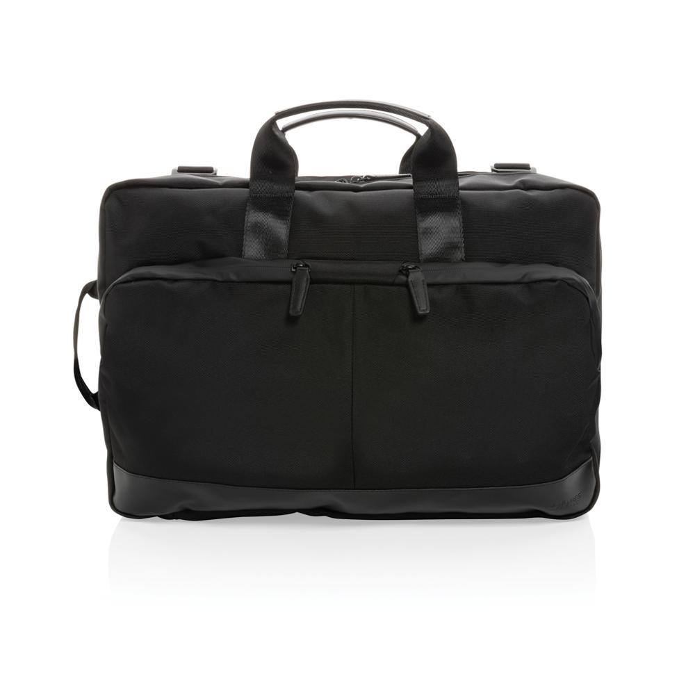 Maximale functie in minimalistische vorm, de Swiss Peak 2-in 1 executive laptoptas is een slimme 2-in-1 tas die het beste van een aktetas en rugzak in één combineert. De hybride rugzak-aktetas manoeuvreert net zo gemakkelijk als een aktetas of rugzak en schakelt tussen beide. Hij zit boordevol functies en heeft 2 voorvakken, meerdere binnenvakken, een apart gewatteerd 15,6-inch laptopvak en een ruim compartiment voor een korte weekendtrip. Compleet met een verborgen bagageband voor over je trolley, is deze veelzijdige metgezel een alles-in-één oplossing voor al je reizen. Met AWARE™ tracer die het echte gebruik van gerecyclede materialen valideert. Elke tas heeft 49,3 PET-flessen hergebruikt. 2% van de opbrengst van elk verkocht Aware™-product wordt gedoneerd aan Water.org.