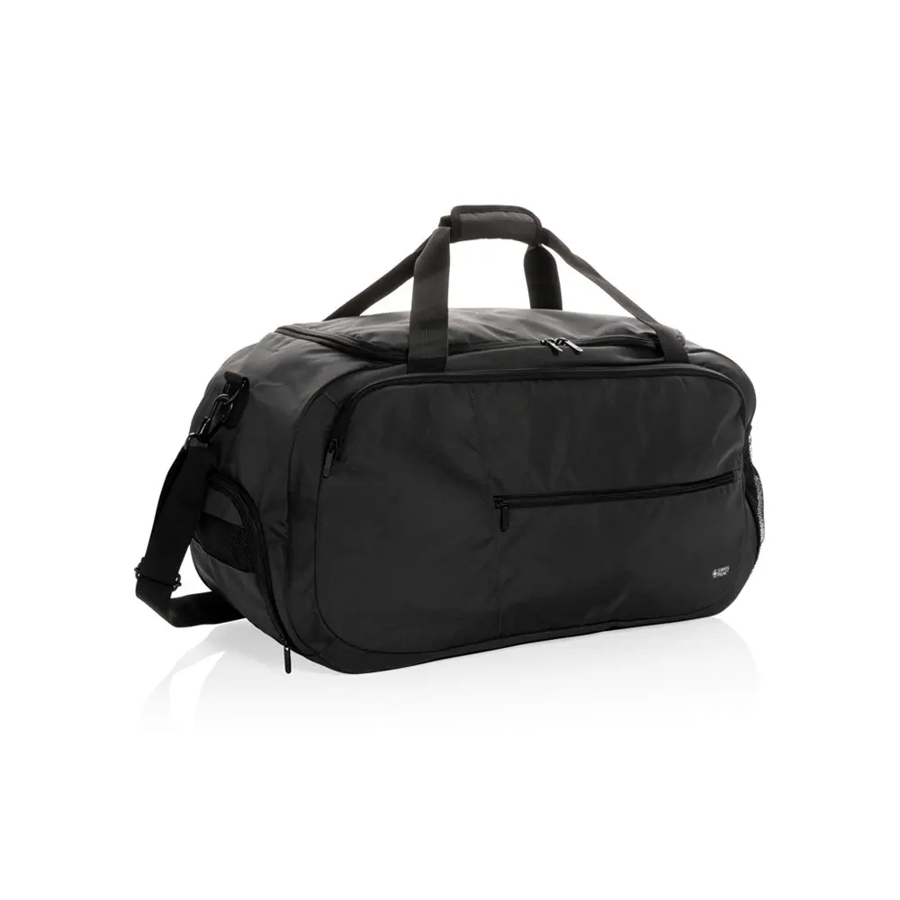 De Swiss Peak AWARE™ RPET sporttas is uw ideale partner voor marketingacties en events. Met een ruime inhoud van 50 liter biedt deze moderne duffel eenvoudig toegang tot uw spullen via de grote opening. Praktische compartimenten zoals een voorvak met rits en twee mesh buitenvakken zorgen voor georganiseerde opberging. Het verstelbare hengsel past zich aan uw voorkeur aan, voor comfortabel dragen.