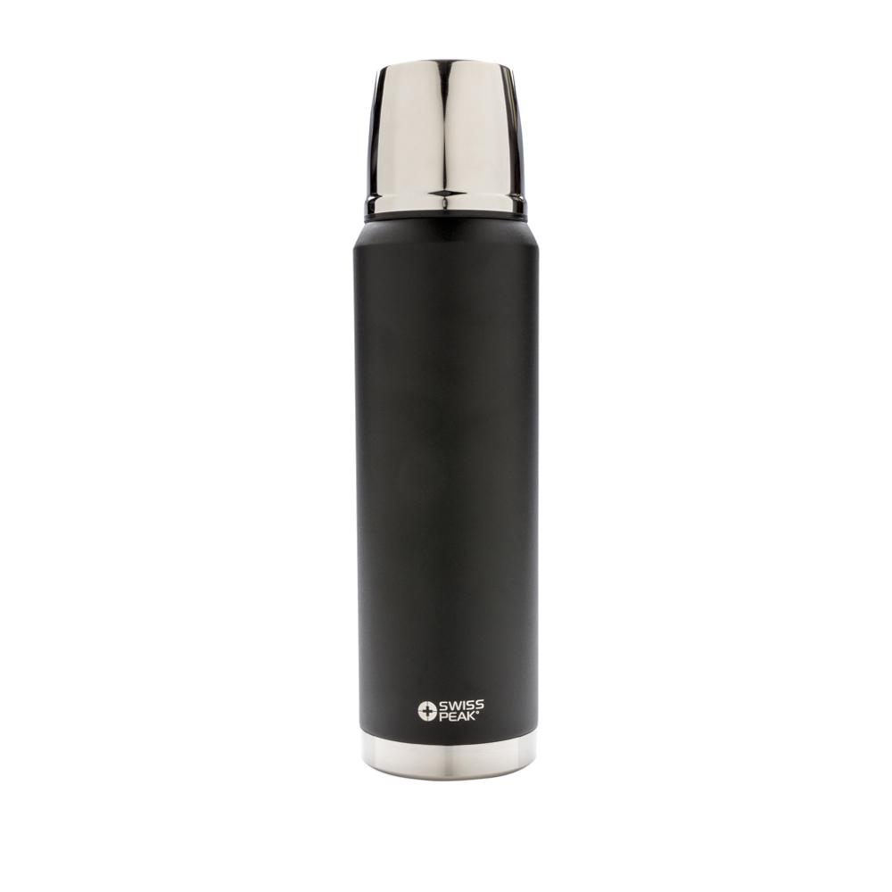 De Swiss Peak Elite serie heeft vacuümisolatie en is gemaakt uit dubbelwandig 18/8 roestvrij staal. De gepoedercoate zwarte kleur is gemaakt om lang mee te gaan! Geen vervagen of barsten hier! De binnenwand is bedekt met koper voor ultieme geleiding om drankjes 8 uur warm te houden en 24 uur koud. Met de hand afwasbaar en lekvrij. Inhoud 1000 ml.