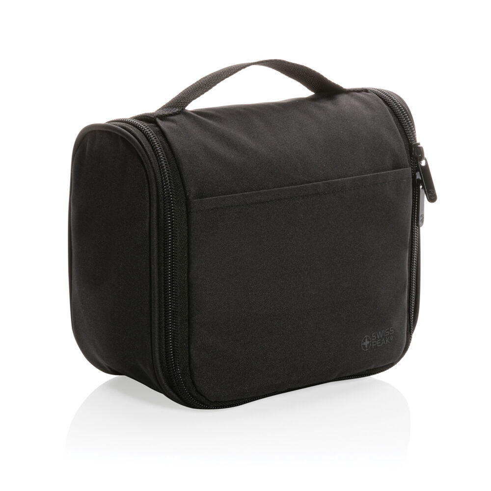 Blijf georganiseerd op reis met de Swiss Peak Lohan toilettas, perfect als gepersonaliseerd relatiegeschenk met uw logo. Deze duurzame tas van 100% gerecycled polyester (rPET) met AWARE™ tracer biedt één hoofdcompartiment, vier subcompartimenten, twee open gaasvakken en één gaasritsvak voor efficiënte opberg van toiletartikelen. Hang hem eenvoudig op met de ingebouwde haak voor gemak op locatie. PVC-vrij en conform strenge milieunormen, inclusief REACH en AZO-kleurstoffen, ondersteunt u met dit compacte 2L-product uw duurzame branding. Ideaal voor marketingacties of events: deel het uit aan klanten en versterk uw imago met een praktisch, eco-vriendelijk item dat organisatie en professionaliteit uitstraalt.