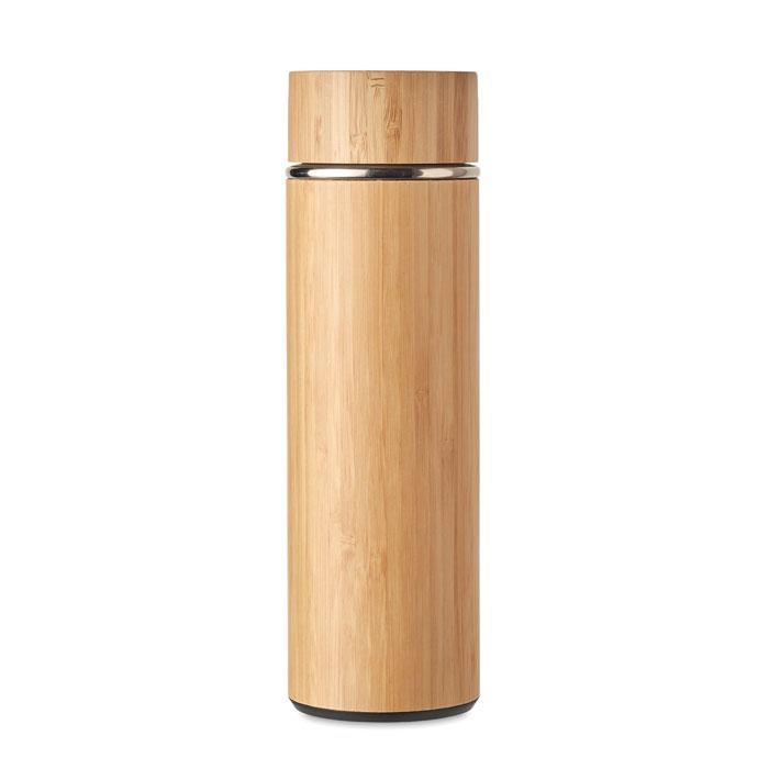 Dubbelwandige roestvrijstalen en bamboe isolerende vacuümfles met extra theezeef binnenin. Dankzij de theezeef kan je een verse fles thee zetten met je favoriete smaak. Met een inhoud van 400 ml kan je de hele dag gehydrateerd blijven. Lekvrij. Bamboe is een natuurproduct, er kunnen kleine variaties in kleur en grootte per item zijn, wat het uiteindelijke decoratie resultaat kan beïnvloeden. FSC®-certified | FSC 100%, N5.7, FSC-C213206