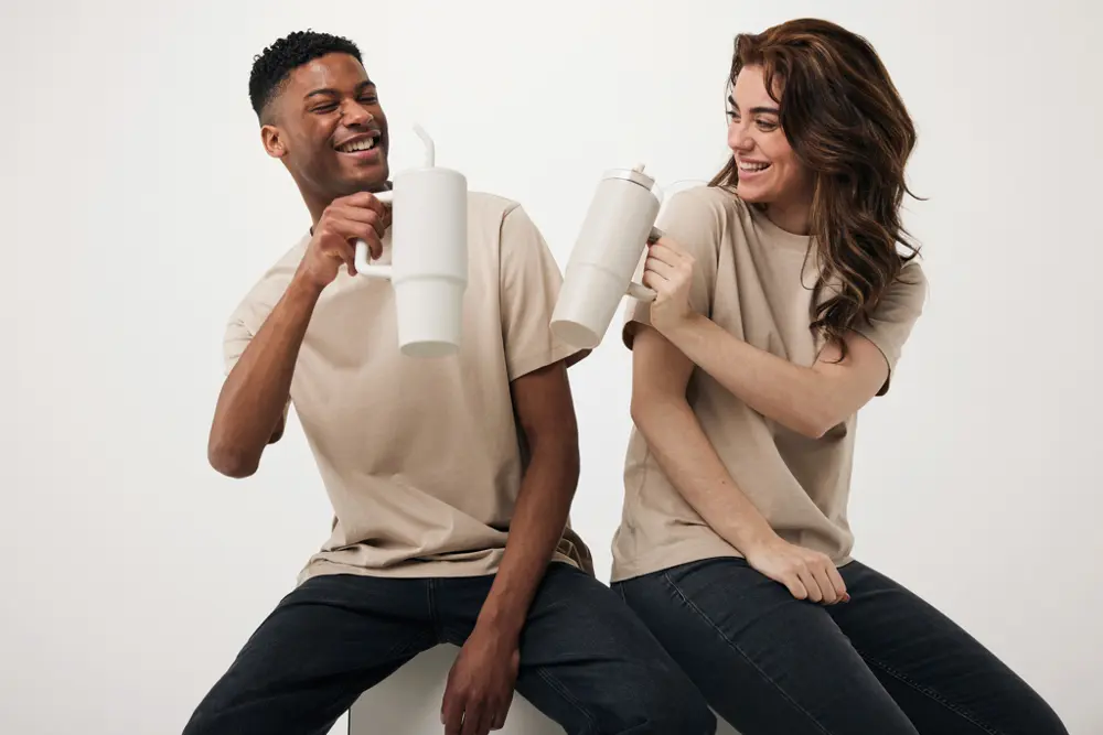 Ontdek hoe deze duurzame tumbler van 750 ml uw bedrijf kan vertegenwoordigen. Gemaakt van 42% gerecycled materiaal, biedt hij een lage milieu-impact terwijl u uw klanten voorziet van een praktisch relatiegeschenk. Met logobedrukking personaliseert u deze tumbler eenvoudig voor uw events of promotiecampagnes, en versterkt u zo uw merkherkenning.