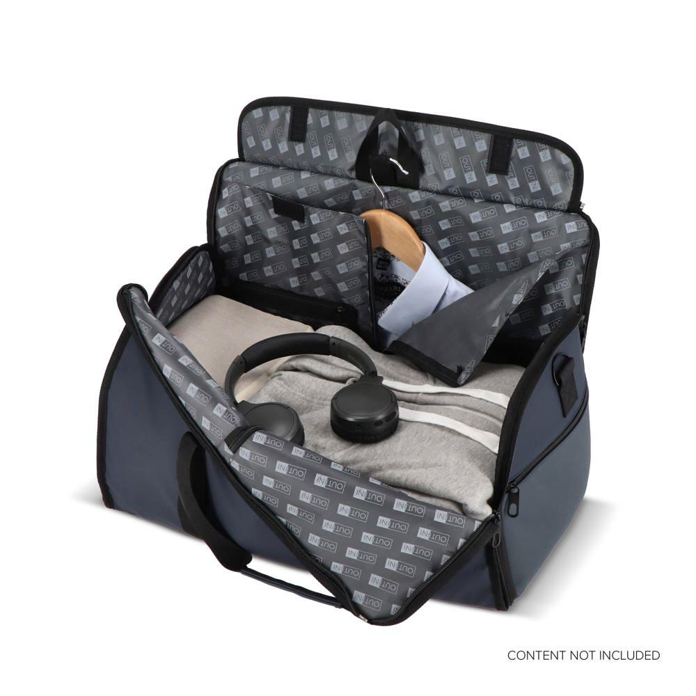 De Carry Smart reistas van InSideOut is jouw ideale metgezel voor zakelijke trips en events, gemaakt van luxe materialen met een stijlvolle afwerking. Je neemt een blazer of jurk kreukvrij mee dankzij de ingebouwde kledingtas, en met de ruime opbergruimte, verstelbare schouderriem en handige losse schoenenzak blijf je georganiseerd onderweg. Perfect als gepersonaliseerd relatiegeschenk met jouw logo bedrukking: deel het uit aan klanten op events en boost je merk met functionaliteit en stijl. Reis slim en laat indruk na met deze veelzijdige tas.
