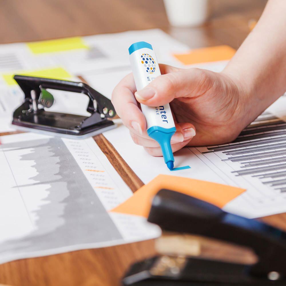 Personaliseer 'm eenvoudig met jouw logo voor maximale zichtbaarheid bij je klanten. Ideaal voor events, beurzen of als blijvende reclame, want iedereen gebruikt een tekstmarker dagelijks op kantoor of onderweg.