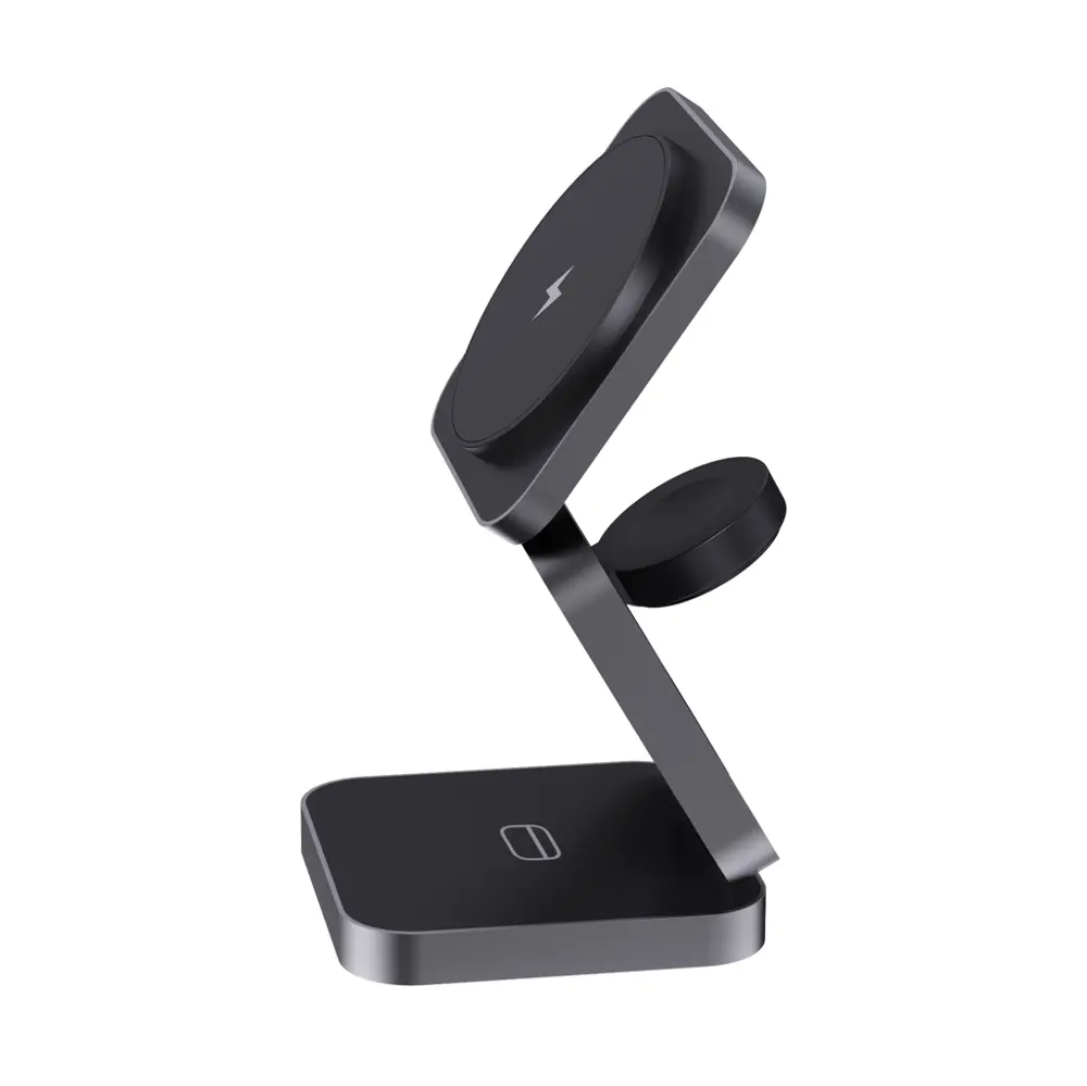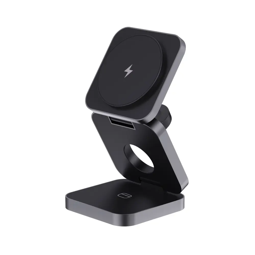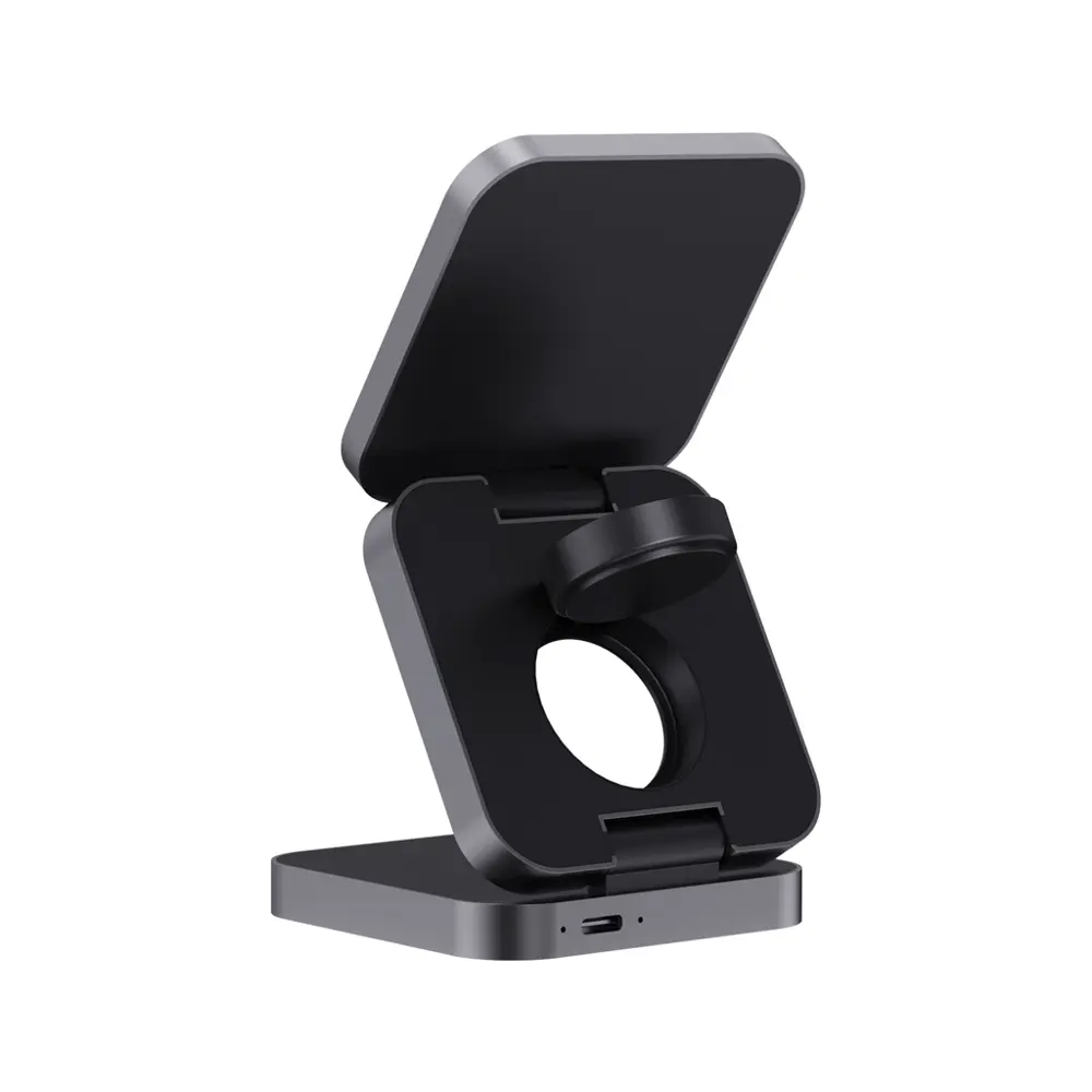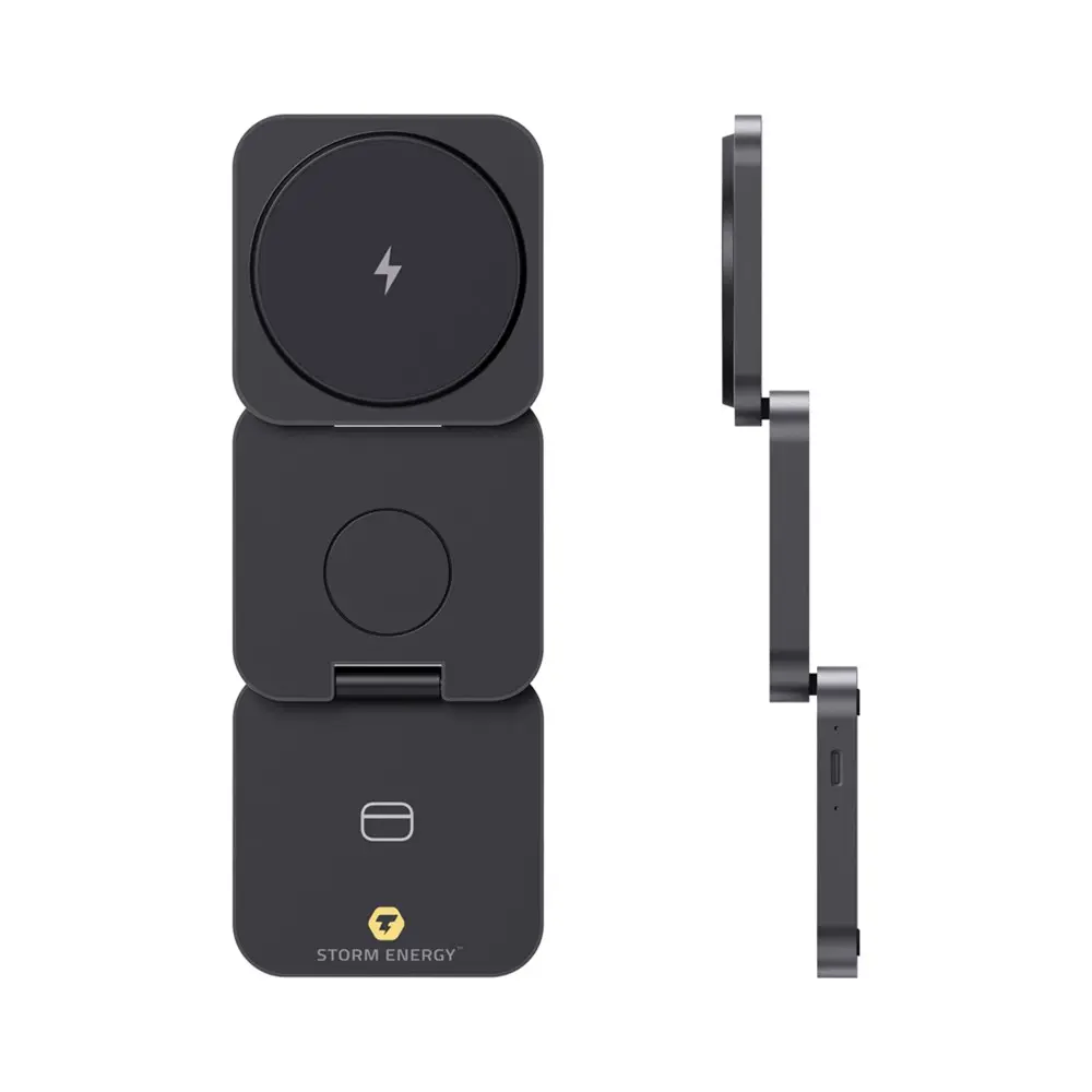 Ontdek deze luxe opvouwbare 3-in-1 draadloze oplader, perfect voor uw marketingcampagnes en events. Als uw partner voor gepersonaliseerde relatiegeschenken, bieden wij logobedrukking aan om uw merk prominent te maken. Deze oplader laadt smartphones, oordopjes en smartwatches op zonder kabels, ideaal voor uitdeling aan klanten en relaties.