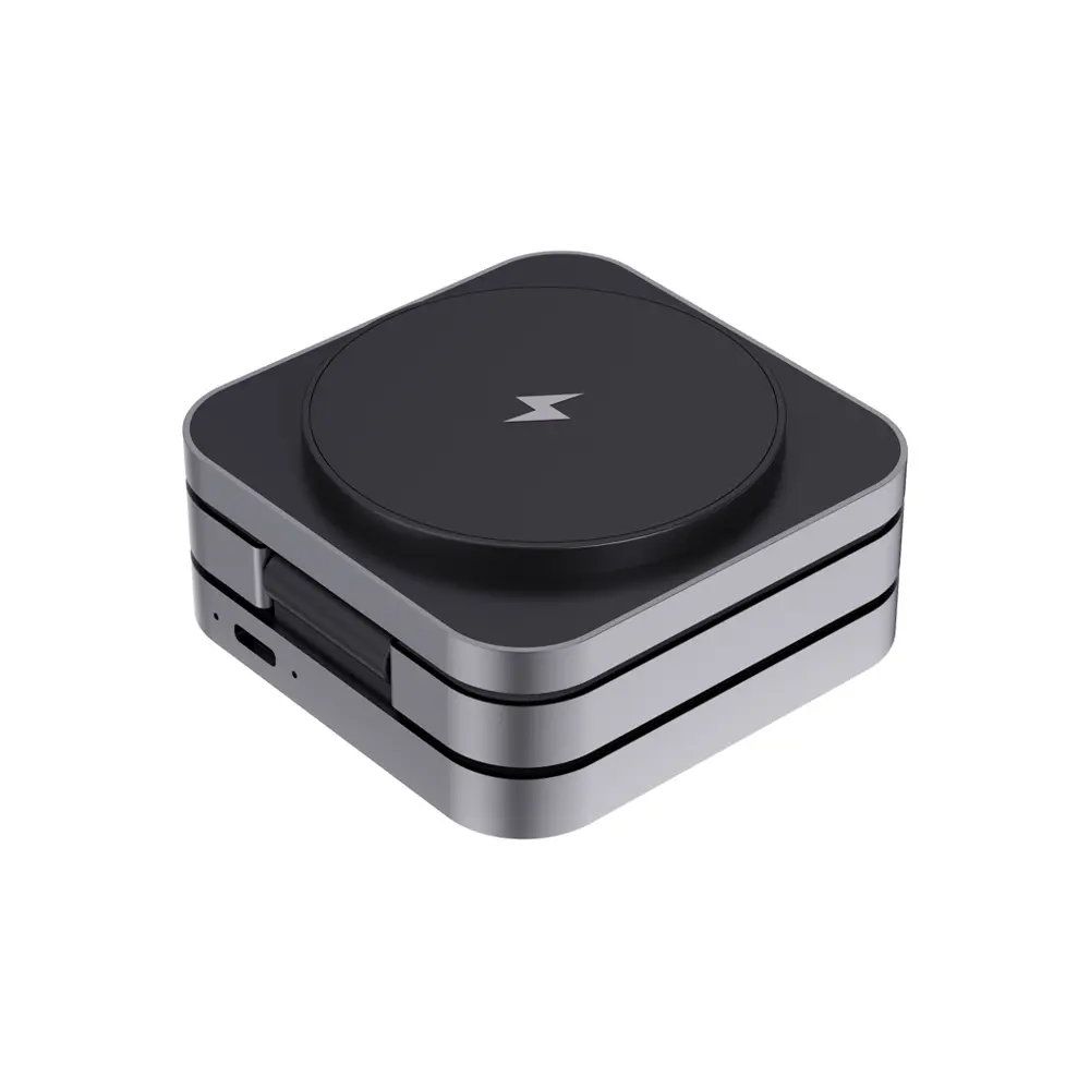 - Oplaadopties: Magnetische 15 W voor smartphones, 5 W voor oordopjes en kleine apparaten met hoesje, 2,5 W voor Apple smartwatches.