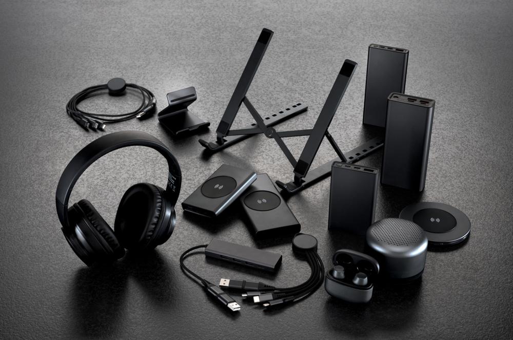 Je ontvangt een opvouwbare draadloze hoofdtelefoon met krachtige bas, ideaal als gepersonaliseerd relatiegeschenk met jouw logo. Gemaakt van RCS-gecertificeerd gerecycled aluminium en ABS, met 70% totaal gerecycled materiaal voor een duurzame keuze die je merk ecologisch positioneert. RCS-certificering garandeert een transparante toeleveringsketen, en aluminium blijft eindeloos recyclebaar zonder kwaliteitsverlies.