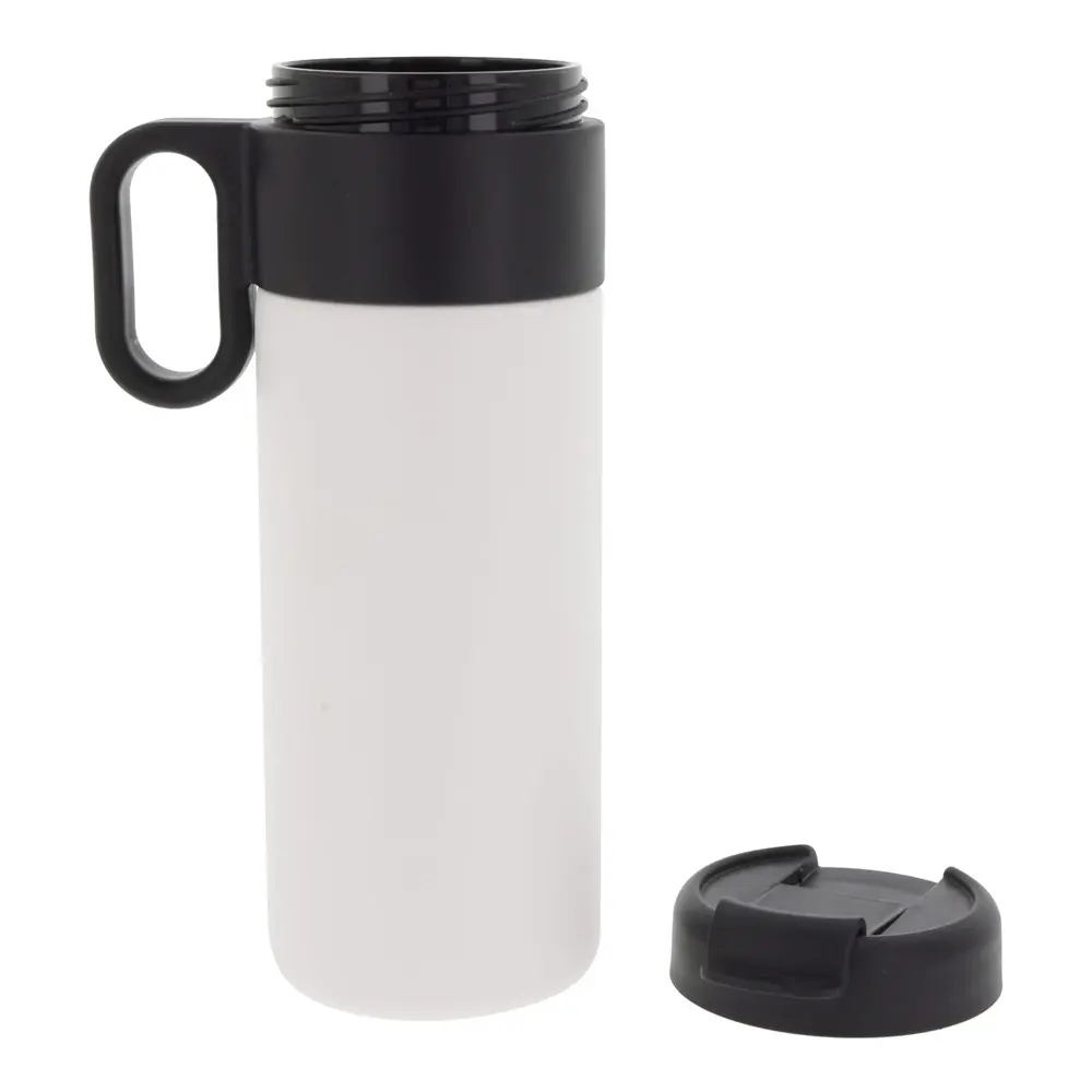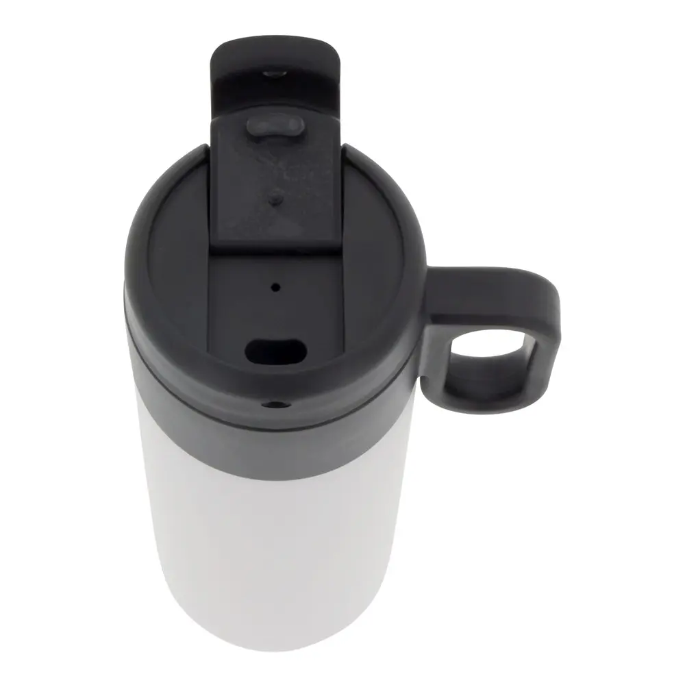 Ontdek de Thermofles Flow met handvat sublimatie van 400 ml, een ideaal relatiegeschenk voor uw marketingcampagnes of events. Deze dubbelwandige, vacuüm geïsoleerde fles uit roestvrij staal (RVS) houdt dranken tot 12 uur warm en 24 uur koud, perfect voor onderweg. Het lekvrije klapdeksel en het stevige handvat zorgen voor gebruiksgemak en hygiëne.
