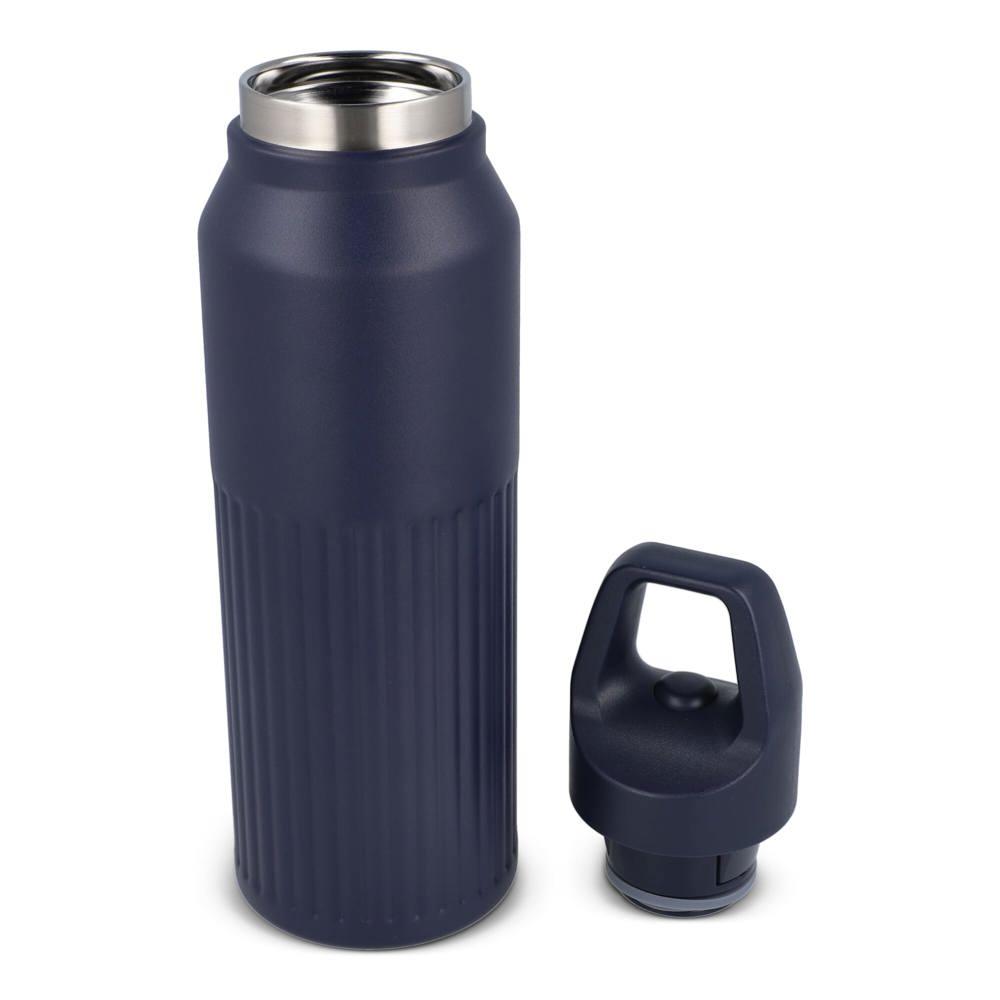 Je ontvangt een robuuste roestvrijstalen thermofles van 500 ml met een handige Easy-Click dop die je met één klik opent en sluit. Het moderne streeppatroon geeft een stijlvolle look die perfect past bij je bedrijfsimago.