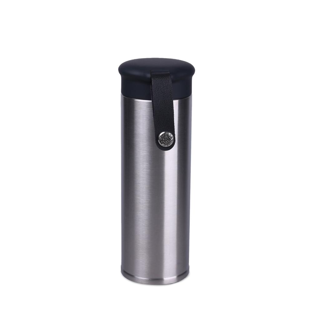 Geniet je van thee of limonade met stukjes fruit? Deze thermosfles houdt de temperatuur exceptioneel lang vast en heeft een handig zeefje, zodat je volop van je drankje smult zonder compromissen. De soft touch sluiting en stijlvolle band met gesp geven een premium uitstraling die je merk prestige verleent.