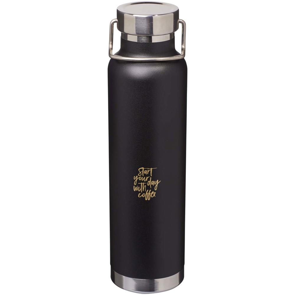De Thor koper geïsoleerde thermofles van 650 ml is RCS-gecertificeerd en gemaakt van dubbelwandig gerecycled roestvrij staal met koperen vacuümisolatie. Je houdt dranken tot 12 uur warm en 48 uur koud, perfect voor lange events of dagelijks gebruik.