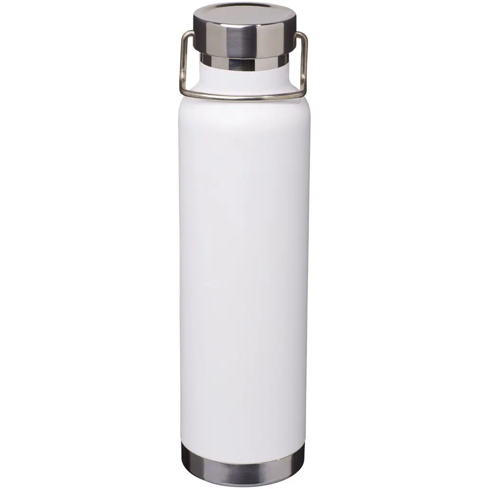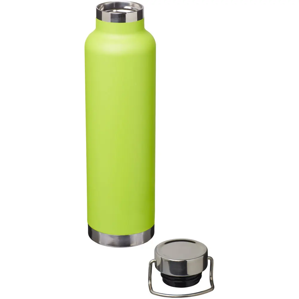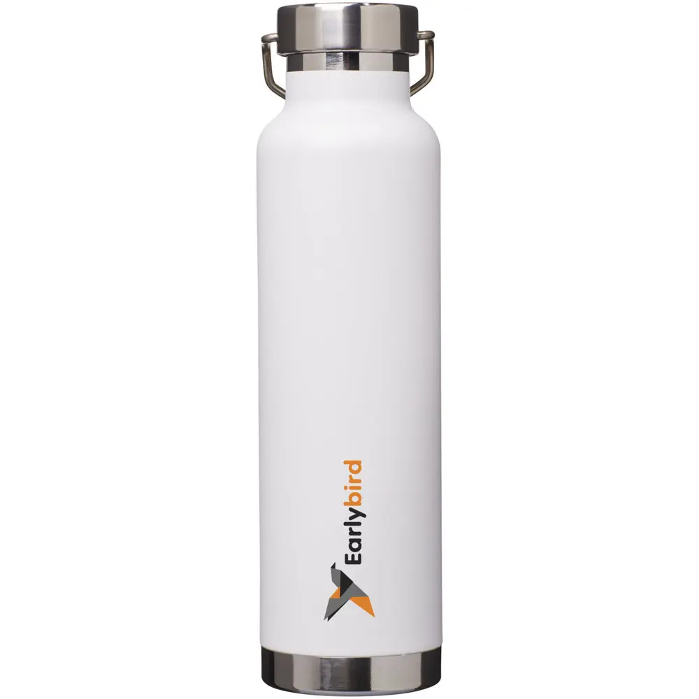 De Thor thermofles van 650 ml is een ideaal gepersonaliseerd relatiegeschenk voor uw marketingcampagnes of events. Met zijn duurzame, dubbelwandige roestvrijstalen vacuümconstructie met koperen isolatie behoudt uw drank tot 48 uur fris koud en minstens 12 uur warm. Condensatie aan de buitenkant wordt effectief voorkomen, terwijl de trendy poedercoating zorgt voor een professionele uitstraling.