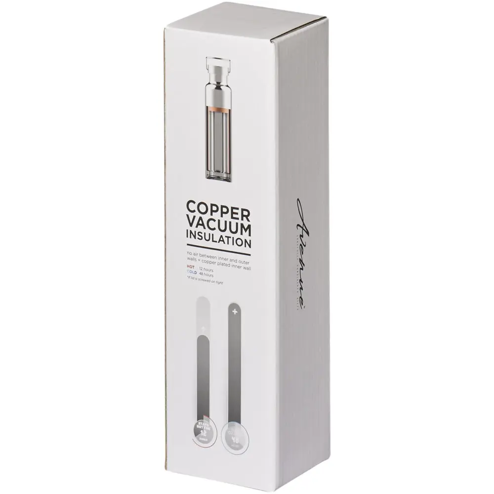 Dankzij de dubbelwandige vacuümconstructie met koperen isolatie blijft uw drank 48 uur koud en minstens 12 uur warm. Dit voordeel maakt de fles perfect voor lange dagen op kantoor, events of onderweg. Geen condensatie aan de buitenkant, wat hygiëne en comfort garandeert voor uw ontvangers.
