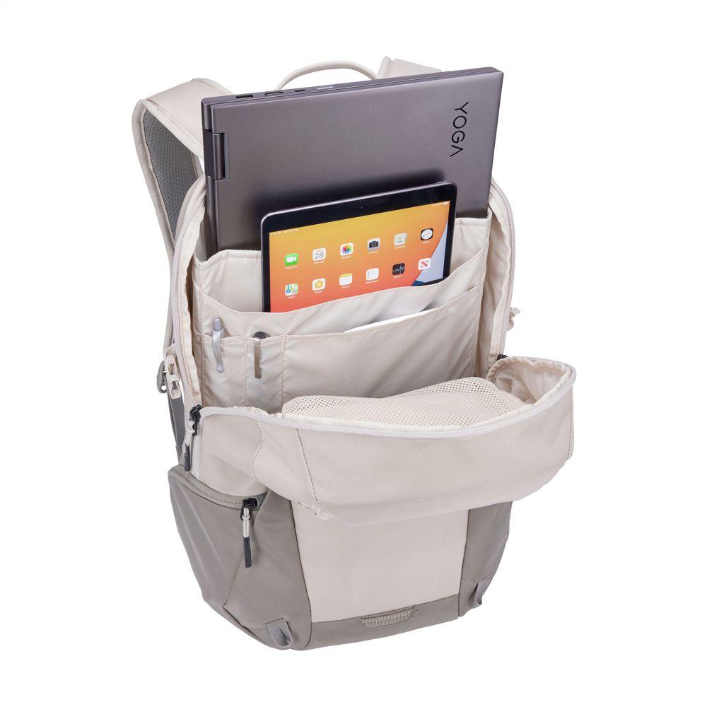 Ontdek deze slanke en stijlvolle Thule rugzak van stevig bluesign® approved 400D nylon. Je organiseert al je spullen perfect met 2 ruime compartimenten, beschermde vakken voor een laptop tot 15,6 inch en tablet tot 10,5 inch, plus handige binnenvakken voor accessoires en pennen. Een extra ritsvak vooraan en elastisch zijvak van gaas houden je drinkfles stevig op zijn plek. De bagageband laat je hem makkelijk op een trolley bevestigen.