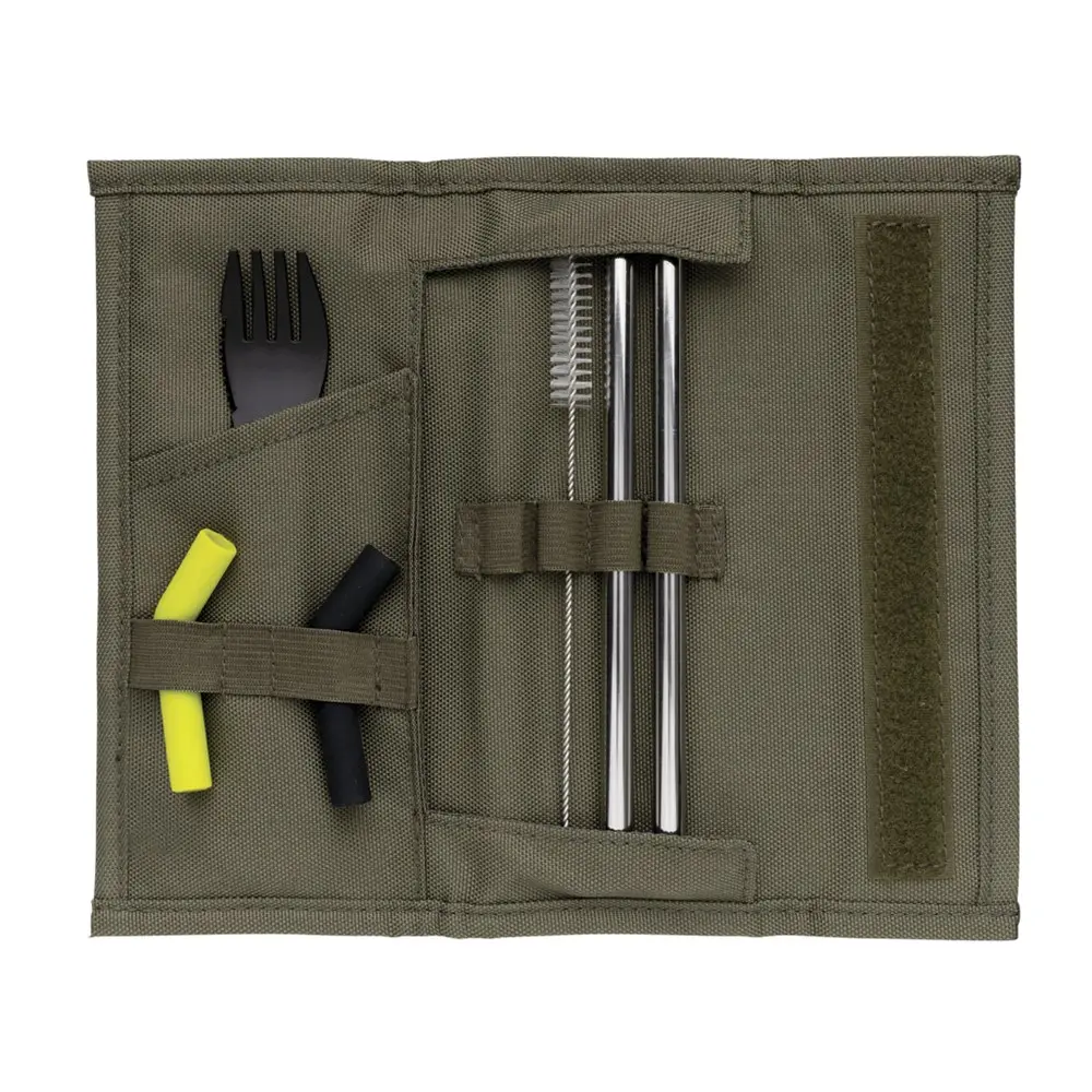 Dankzij de vaatwasserbestendige materialen (roestvrij staal en polyester) vermindert u het gebruik van eenmalig plastic, wat bijdraagt aan een groen imago voor uw merk. Personaliseer de etui met uw logo voor een professionele touch als relatiegeschenk. De set voldoet aan strenge voedselveiligheidsnormen, is PVC-vrij en vrij van schadelijke stoffen zoals BPA en phthalaten.
