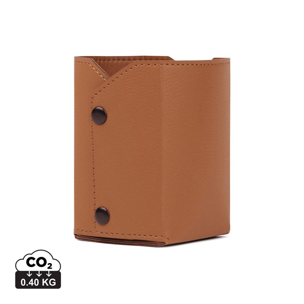 Upgrade je werkruimte met de Timo pennenhouder en ervaar de perfecte combinatie van functionaliteit en verfijning. Met drukknopen aan elke hoek. Wanneer de hoeken aan elkaar zijn geknoopt, transformeert het zich tot een handige houder. Met afmetingen van L: 7 cm x B: 7 cm x H: 10 cm wanneer gevouwen, is het perfect voor het organiseren van je bureaumaterialen. Detailstiksels langs de rand voegen een vleugje verfijning toe. Gecertificeerd volgens RCS (Recycled Claim Standard), waarbij de RCS-certificering garandeert dat de gehele toeleveringsketen van gerecyclede materialen is gecertificeerd. Het totale gerecyclede gehalte is gebaseerd op het totale productgewicht. Dit product bevat 33% RCS-gecertificeerd gerecycled polyester.