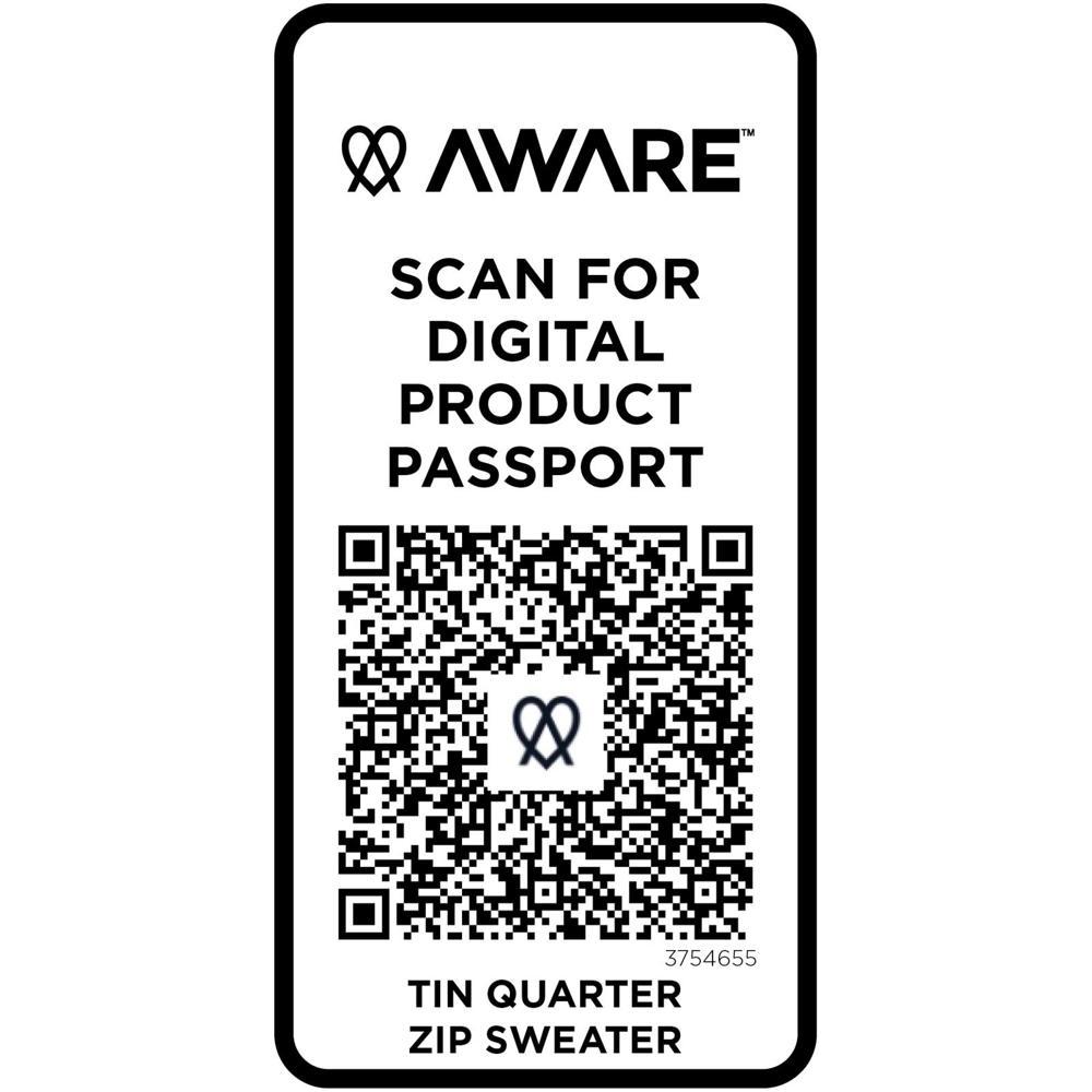 Ontdek de Tin uniseks Aware™ trui met kwartrits, perfect als gepersonaliseerd relatiegeschenk met jouw logo. Gemaakt van 280 g/m² 50% gerecycled polyester en 50% gerecycled katoen, voelt deze sweater zacht en comfortabel aan, terwijl je bijdraagt aan een duurzamere wereld.