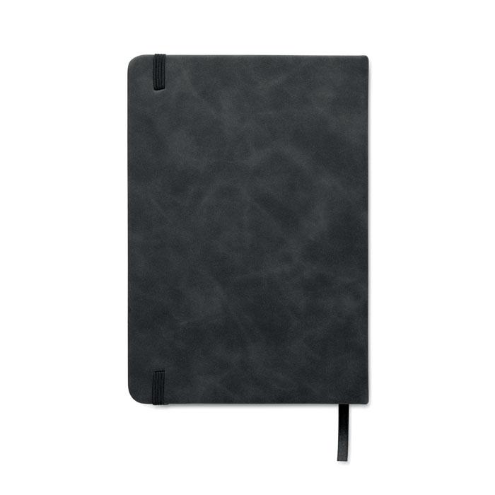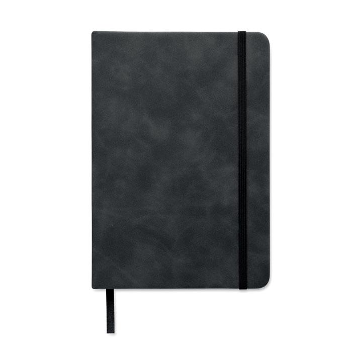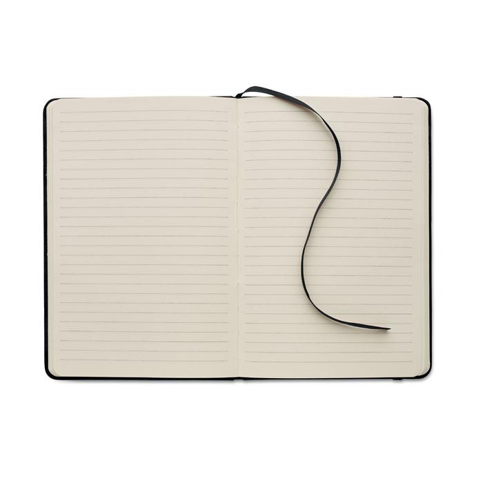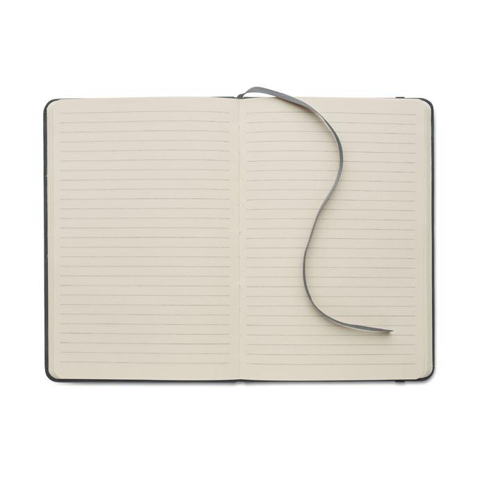 A5 notitieboek met 40% gerecyclede harde PU kaft en 60% PU kaft. Gebonden. 160 gelinieerde pagina's van 70 grams gerecycled papier (80 vellen). Bijpassende elastische sluitband en lint als bladwijzer.