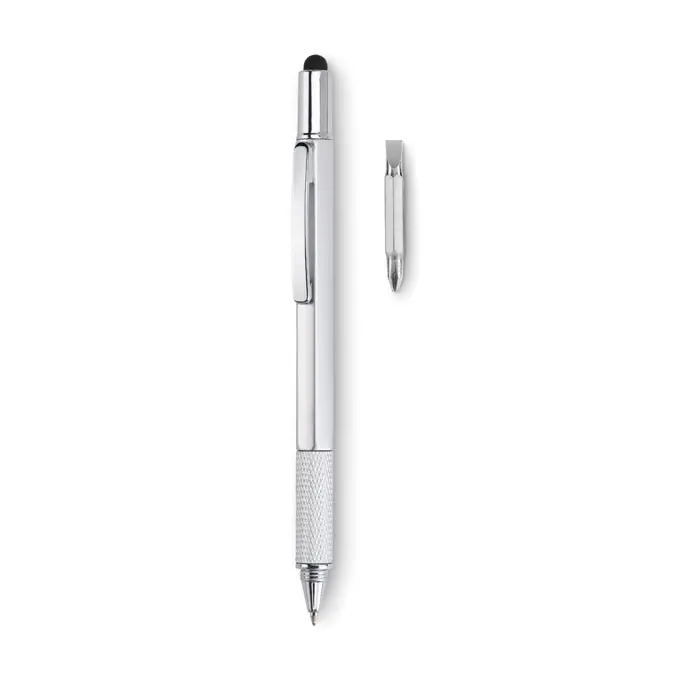 Ontdek onze multifunctionele tool, een praktische balpen met draaimechanisme die meerdere functies combineert. Deze tool is ideaal voor uw marketingacties en events, waar u hem kunt personaliseren met uw logo om uw merk zichtbaar te maken bij uw klanten.