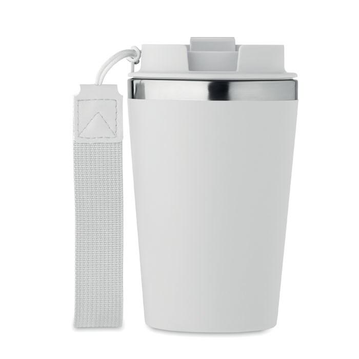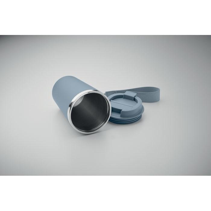 Dubbelwandige beker van gerecycled roestvrij staal (90% gerecycled roestvrij staal en 10% roestvrij staal) met PP buitenlaag met RPET polsband. Inhoud: 350ml.