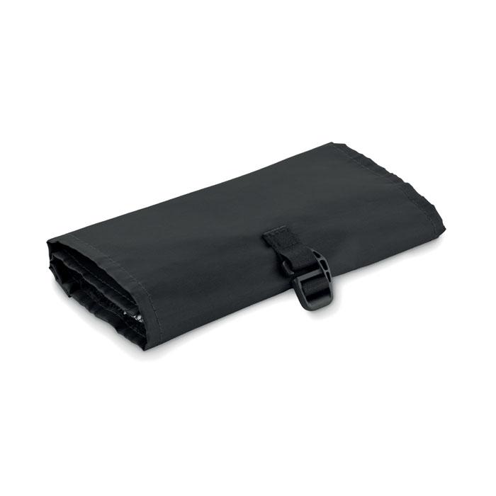 210D RPET oprolbare organizer voor kabels. RPET mesh met 3 vakken voorzien van rits. Deze tas kan ook worden gebruikt als toilettas.