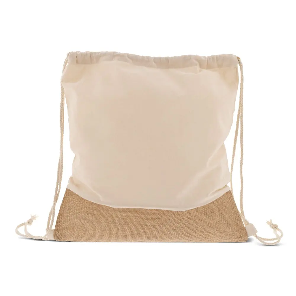 Ontdek onze trekkoord rugzak van jute met katoenen koorden, ideaal als gepersonaliseerd relatiegeschenk. Met afmetingen van 38 x 41 cm biedt deze rugzak voldoende ruimte voor alledaagse essentials, terwijl de stevige constructie zorgt voor langdurig gebruik.