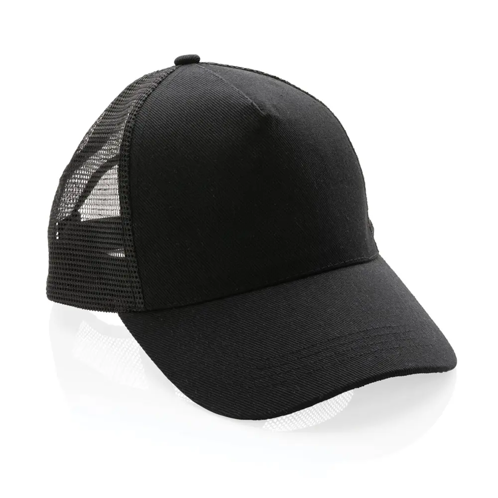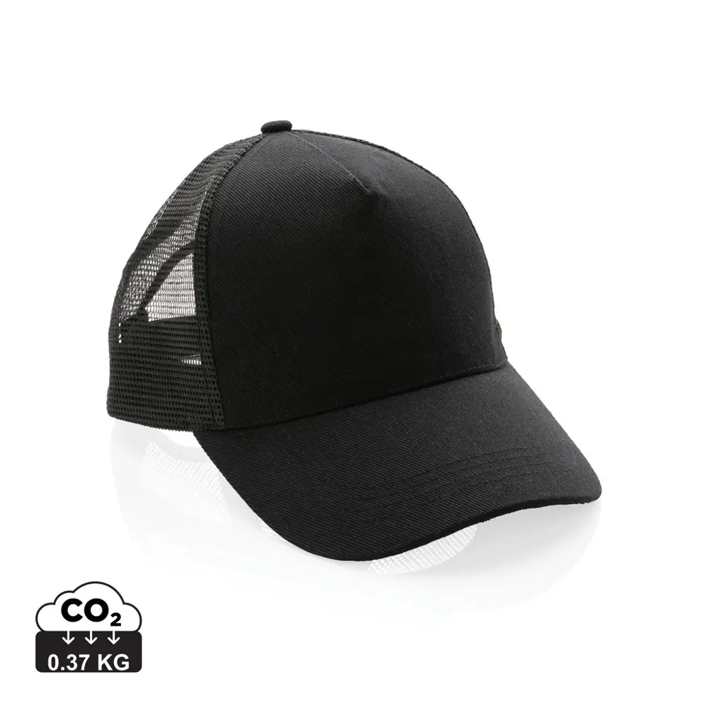 Ontdek deze klassieke trucker cap met vijf panelen en gebogen klep, ideaal als gepersonaliseerd relatiegeschenk. Gemaakt van geborsteld gerecycled katoen van 190 gram met AWARE™-tracertechnologie, garandeert dit product authentieke recycling en waterbesparing. Door te kiezen voor deze cap bespaart u 83 liter water per stuk in vergelijking met conventionele vezels. De achterkant bestaat uit rPET-mesh met klittenbandsluiting voor comfortabel draagplezier.