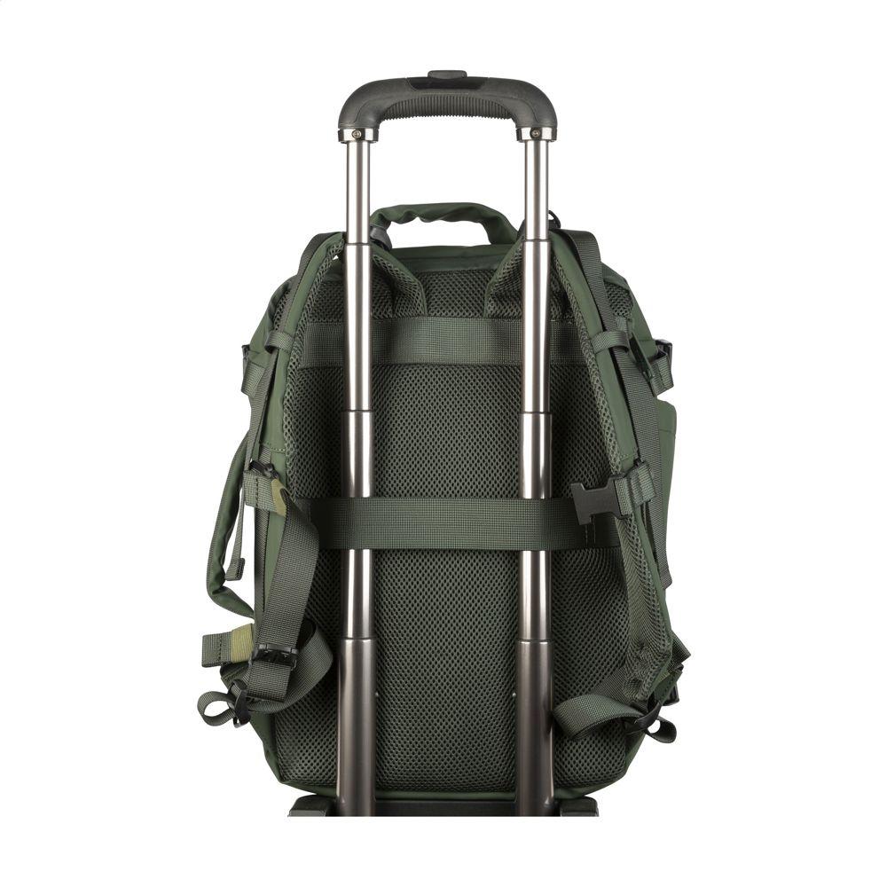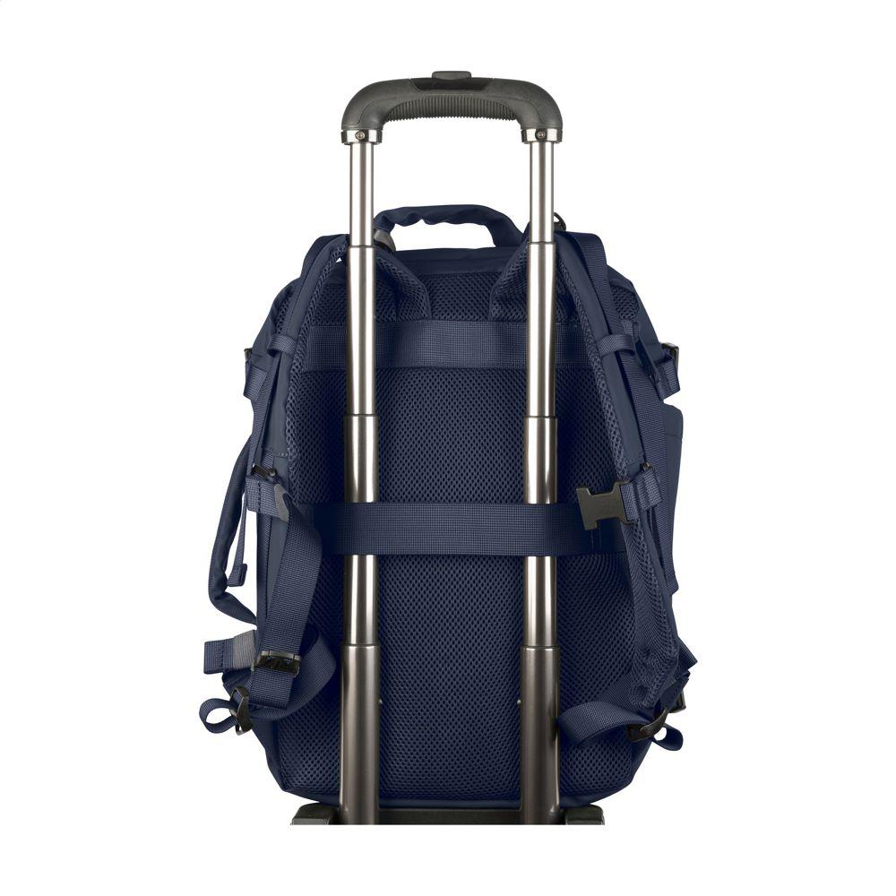 Gemaakt van regenbestendig, harsgecoat materiaal uit gerecycled kunststof – inclusief 23 PET-flessen – én met waterdichte ritsen, blijft alles droog tijdens regenachtige zakenreizen. Je geniet van een ruim hoofd vak voor kleding en accessoires, een groot voorvak, zijvak voor fles of paraplu, gewatteerd laptopvak tot 15,6 inch of MacBook Pro 16 inch, en een verborgen ritsvak achteraan voor documenten. Volledig gevoerd voor extra bescherming.