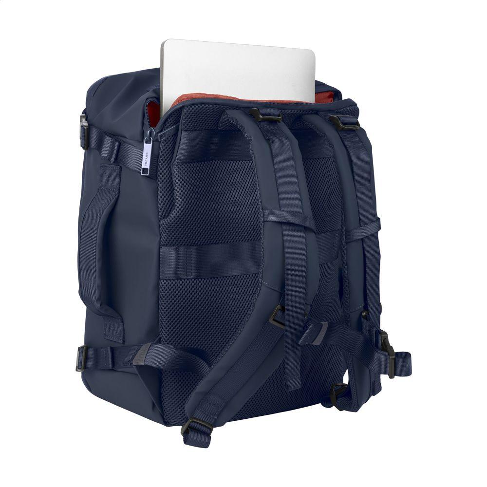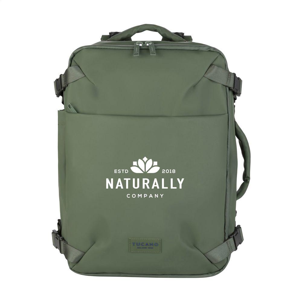 Ontdek deze praktische handbagage rugzak van Tucano, ideaal voor jouw marketingacties en events. Je voldoet moeiteloos aan de afmetingen van lowcost luchtvaartmaatschappijen, zodat je tas altijd mee de cabine in kan. Gemaakt van regenbestendig, harsgecoat materiaal uit gerecycled kunststof – inclusief 23 PET-flessen – toon je duurzaamheid aan je klanten.