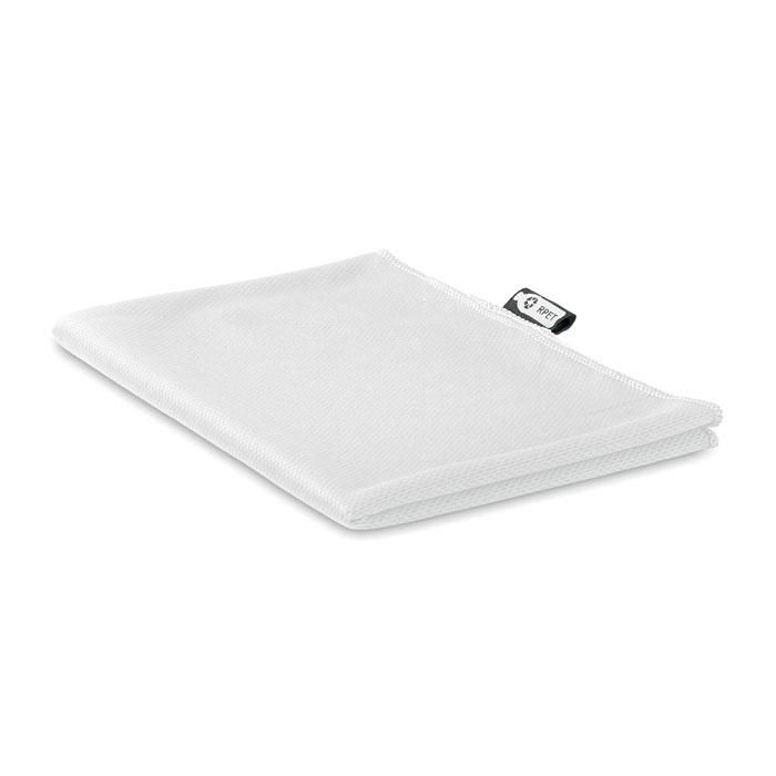 Ontdek deze duurzame RPET sporthanddoek met superieur vochtabsorberend vermogen, verpakt in een handig RPET non-woven mesh zakje. Perfect als gepersonaliseerd relatiegeschenk met jouw logo, ideaal voor marketingacties en events. Je klanten waarderen de milieuvriendelijke keuze uit gerecycled materiaal, dat lang meegaat en indruk maakt tijdens sportevenementen of promoties. De compacte verpakking maakt het makkelijk om uit te delen, terwijl de snelle droging en zachte touch voor optimaal comfort zorgen. Personaliseer hem nu en boost je merkzichtbaarheid!