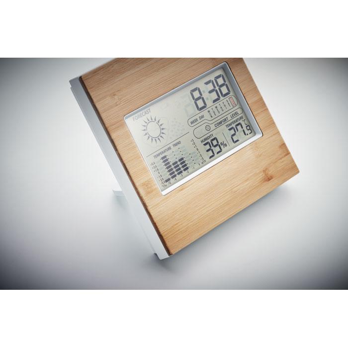 Je maakt indruk met het TURKU bamboe weerstation als gepersonaliseerd relatiegeschenk. Dit multifunctionele apparaat met stijlvol bamboe front toont je de tijd, binnentemperatuur, luchtvochtigheid en kalender op één handig display.