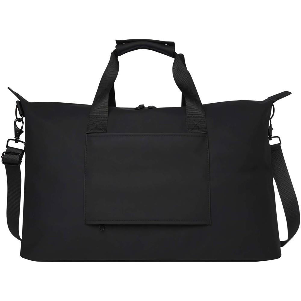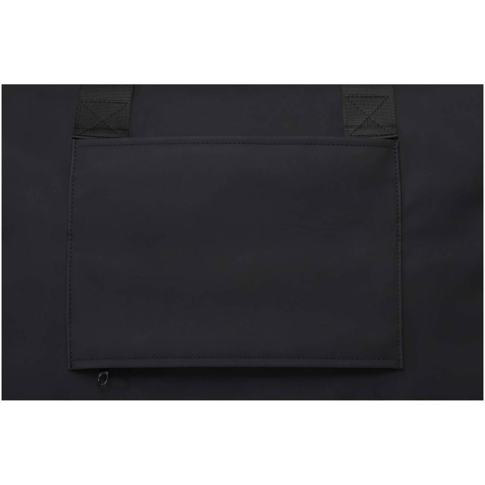 De Turner duffel bag is gemaakt van 51% GRS-gecertificeerd gerecycled plastic en de voering is gemaakt van 100% GRS-gecertificeerd RPET. De duffel heeft een gewatteerd 15,6" laptopcompartiment, een band aan de binnenkant om een waterfles vast te zetten en een vak met rits voor kleinere spullen. Bovendien zorgt de bagageband aan de achterkant ervoor dat je de tas eenvoudig aan je rolkoffer kunt bevestigen. Zo is de tas een handige reisgenoot. De tas kan worden gedragen aan de twee korte handvatten of aan de uitschuifbare en afneembare schouderriem die kan worden aangepast voor maximaal comfort. Inhoud: 36 liter.